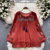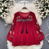 RUGOD Весенне-осенний праздник, этнический стиль, ретро, тяжелая промышленность, вышивка, цветы, зарубежный стиль, рукава-фонарики, свободный универсальный топ