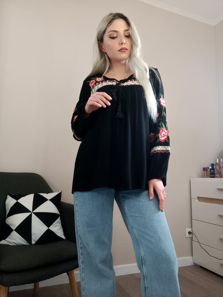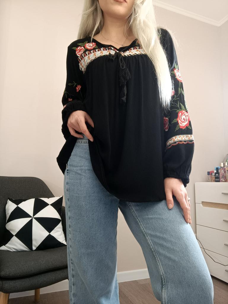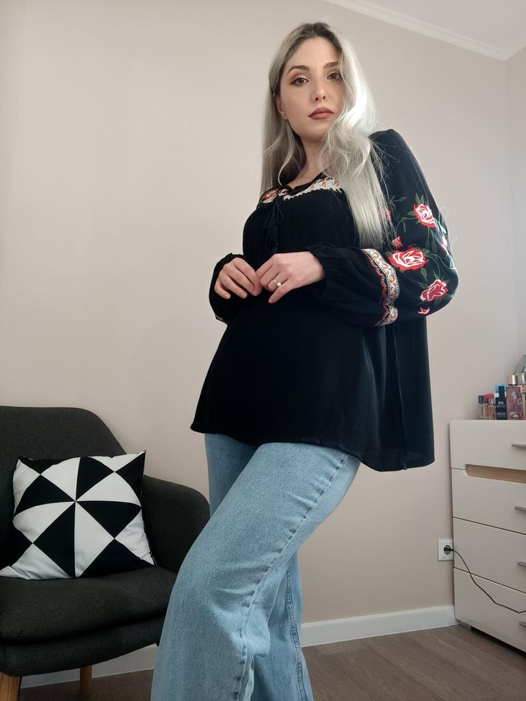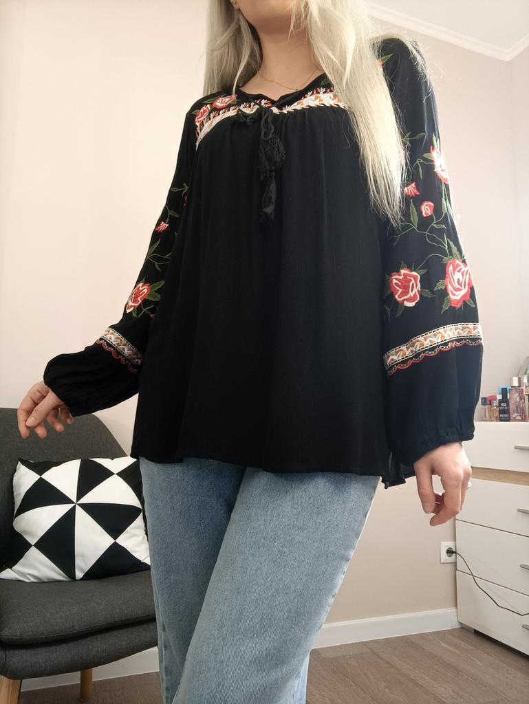 Потрясающая вещица в этническом стиле с вышивкой. Смотрится стильно, к телу приятная. 🔸Блузка представлена в размере One size. - Ее точные замеры: Длина - 65 см Длина рукава от горловины - 66,5 см ОГ - 142 см ОТ - 150 см - Мои параметры: ОГ - 86 см ОТ - 67 см ОБ - 93 см Длина рукава - 52 см Ширина плеч - 37 см Рост 164 см 🔸Сшита блузка из плотного шифона. Материал приятный к телу, лёгкий. Крой трапециевидный. 🔸Рукава объемные. На манжетах резинки. Спереди на завязочках с кисточками. 🔸Блузка вышита достаточно качественно. 🔸К пошиву никаких претензий. 🔸На выбор несколько расцветок. К покупке однозначно рекомендую 👍 Ставлю ⭐⭐⭐⭐⭐ Большое спасибо продавцу ❤️ и Joom ❤️