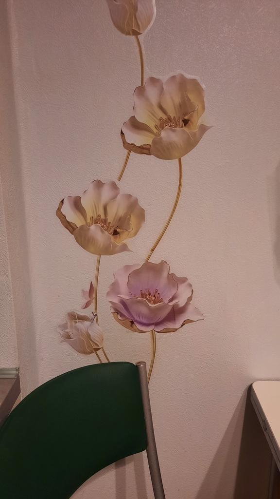 Цветы неплохие. Я почему-то ожидала, что они будут крупнее. Рисунок так устроен, что многие цветы нераздельны. Наверное, на стене будут смотреться хорошо.