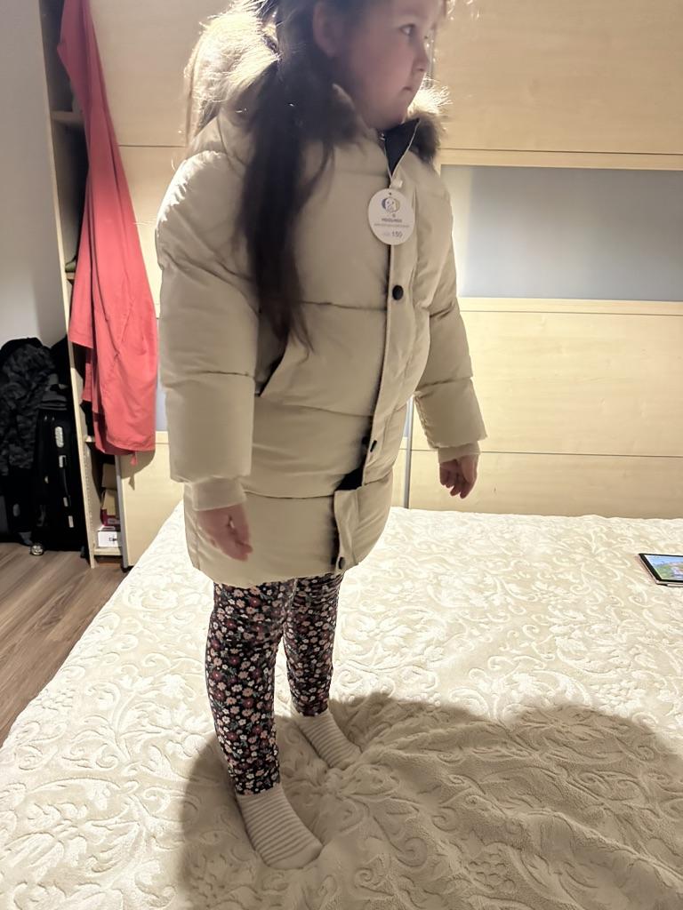 В Молдову пришла за месяц. Качество так себе нитки торчат. Но в целом не плохо. Мех стремный ((( ткань обычная не оч плотная. Точно не водоотталкивающая. Рост ребенка 135 взяла на 150 и подошло идеально👌🏻на следующий год точно будет маленькая. За такие деньги я думаю нормально. Куртку меряли сразу после распаковки довольно такая пухлая, не мятая. Тепленькая для наш зим как раз.