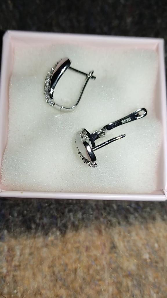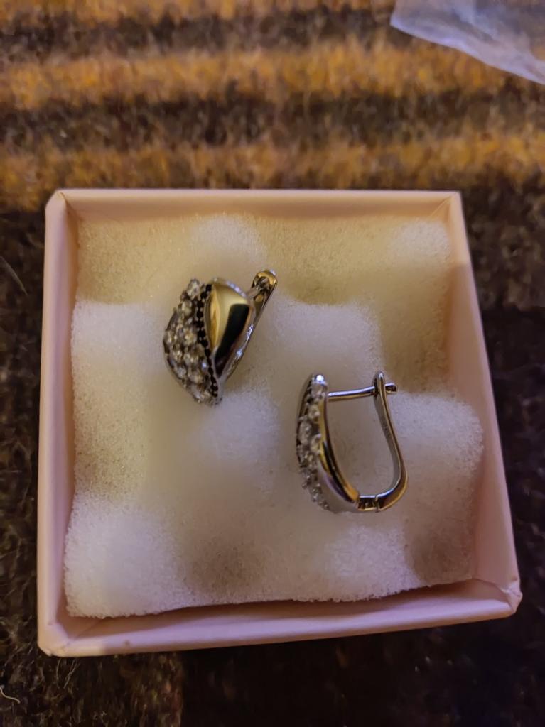 Красивые серьги, доставка чуть больше месяца. Камешки сверкают, замочки крепкие. Всё хорошо. Единственное, такое ощущение, что как-бы не хватает одного камешка. Сначала так и подумала, что камешки выпали или это брак. Но на фото продавца видно, что так и должно быть.Сделаны под серебро, смотрятся презентабельно. Подойдут и на каждый день,и для торжественного мероприятия. В целом покупкой довольна и всем рекомендую этого продавца. Покупаю уже не первый раз, пока все замечательно и никаких нареканий. Спасибо продавцу и Джум. Всем приятных покупок.
