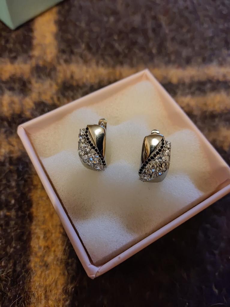 Пару лет назад часто покупала бижутерию в магазине Black Awn. Особенно часто брала её на подарки: изделия всегда приходят в красивой упаковке, картонной коробочке или бархатном мешочке. На этот раз мой заказ - серьги среднего размера с английским замком. Как и другие изделия бренда, серьги украшены россыпью маленьких камушков - прозрачных и чёрного цвета. Качество безупречное, замочек защелкивается легко, но держит надёжно. С внутренней стороны дужек выбита проба 925. В том, что это серебро - сомневаюсь, но сплавы у изделий бренда хорошие. Не темнеют, аллергии не вызывают (говорю про себя и тех, кому дарила украшения). Упакованы в маленький зип-пакетик и бархатный мешочек с тесемками. Серьги рекомендую, красивые. 😍
