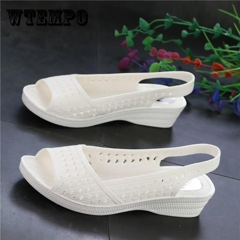 Женская летняя обувь с дырочками, повседневные сандалии на танкетке с открытым носком, нескользящая пляжная белая обувь с мягкой подошвой, белые туфли для медсестер — купить товар онлайн с бесплатной доставкой по всему миру!