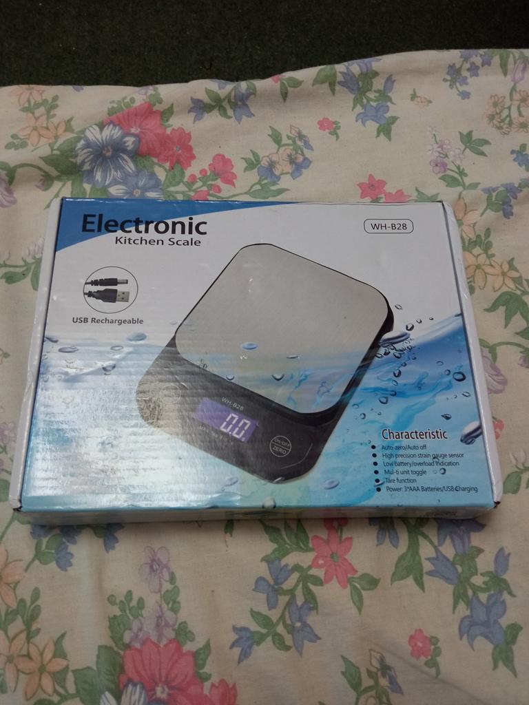Электронные весы. Зарядка от USB , или от трёх батареек. Проверила на пачке соли 750 грамм ( гр) - весы показали 737 гр. Тут к весам претензий нет, вес соли входит в допуск. + - 10% . Также проверила на упаковке кофе 100 гр. Весы показали 106 грамм, пусть будет 6 грамм на упаковку, почти точно.