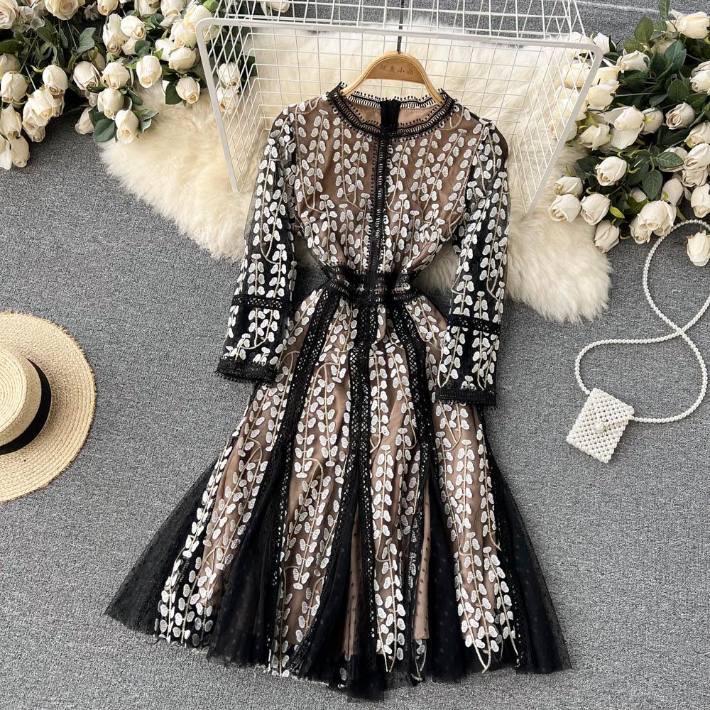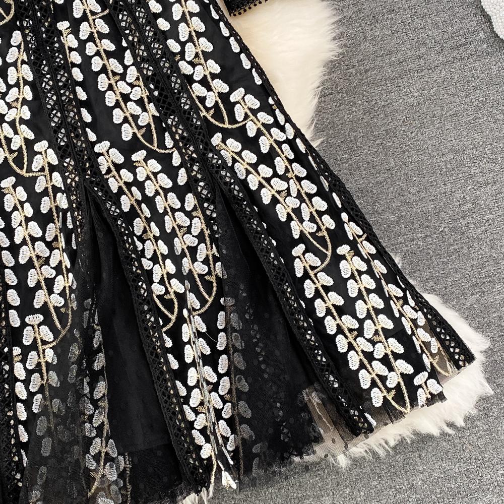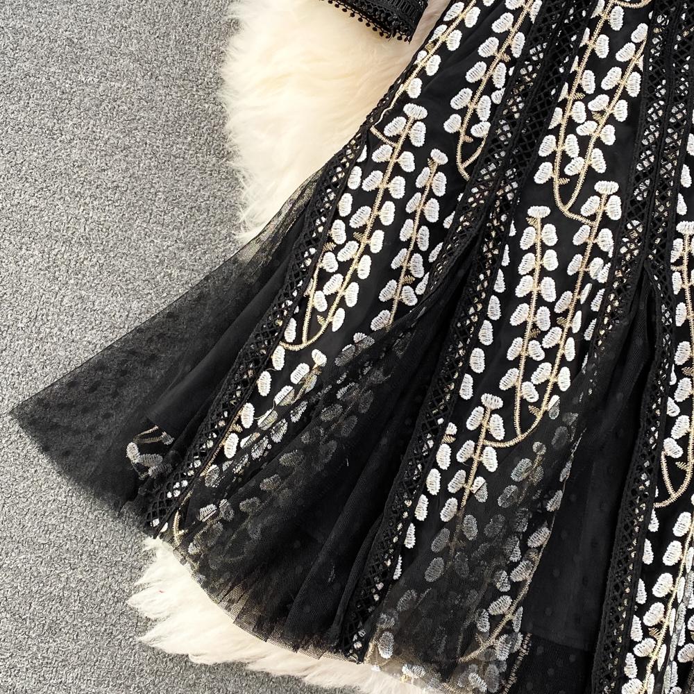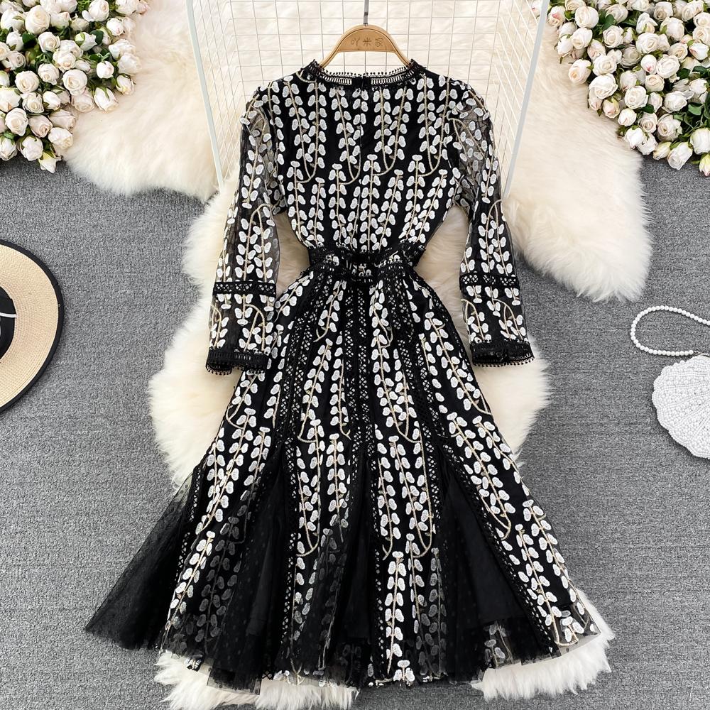 RUGOD Европейское и американское платье, длинное платье, модное сетчатое платье на талии с вышивкой, водорастворимое слово, большое свободное летнее платье