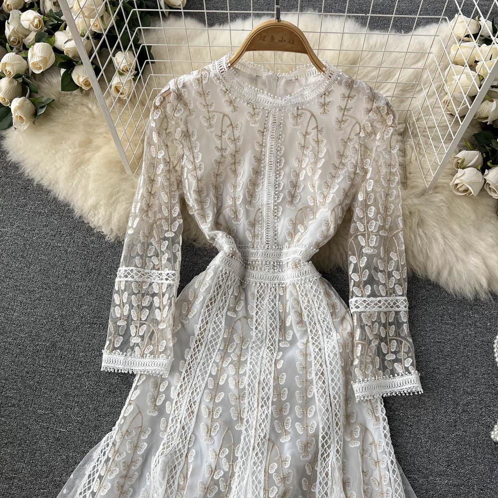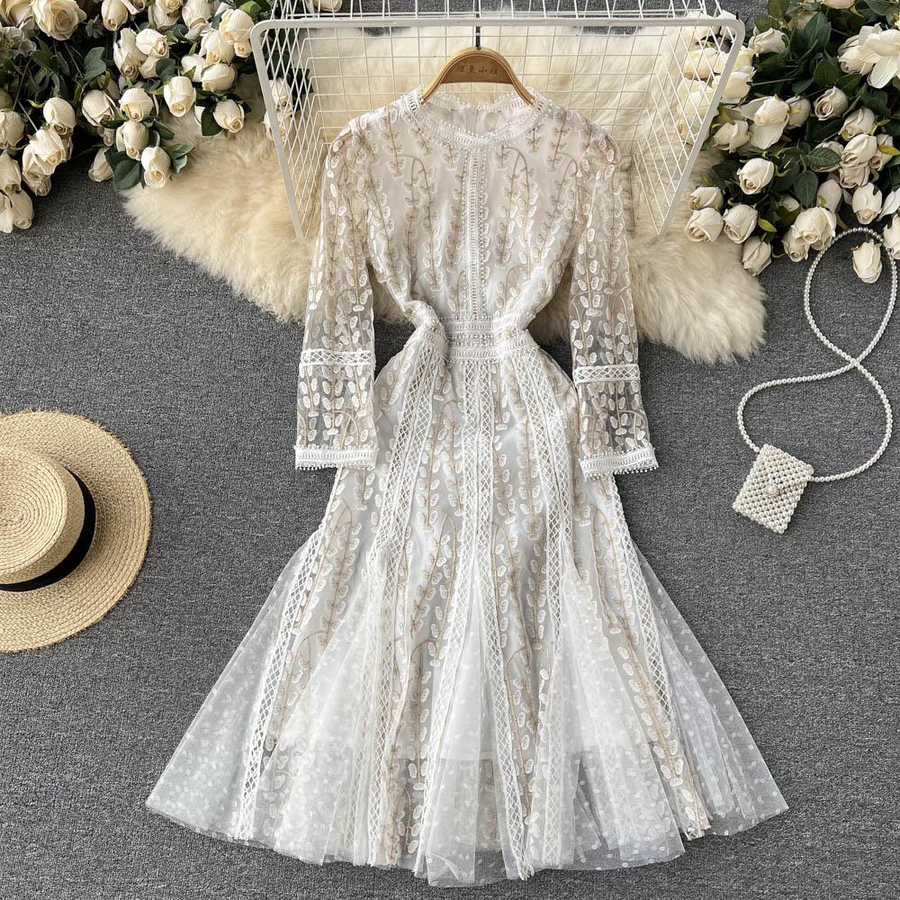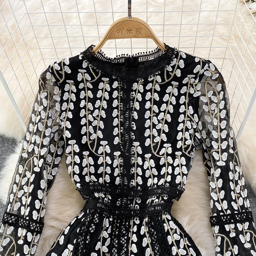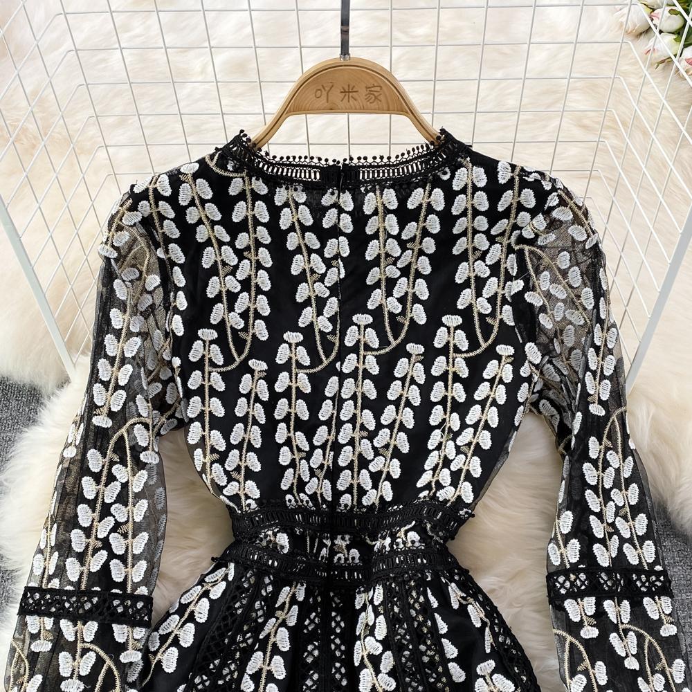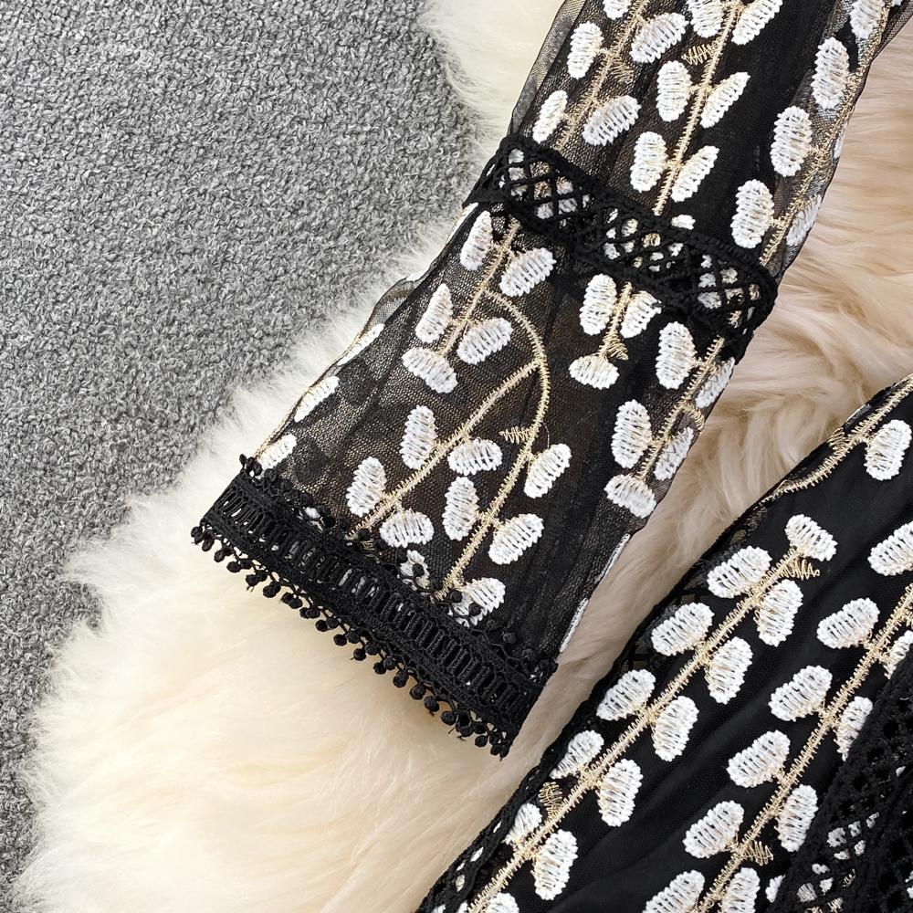 RUGOD Европейское и американское платье, длинное платье, модное сетчатое платье на талии с вышивкой, водорастворимое слово, большое свободное летнее платье
