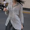 HOUZHOU Рубашка с принтом, женская цветочная весна, черные элегантные и шикарные винтажные свободные топы большого размера с длинными рукавами