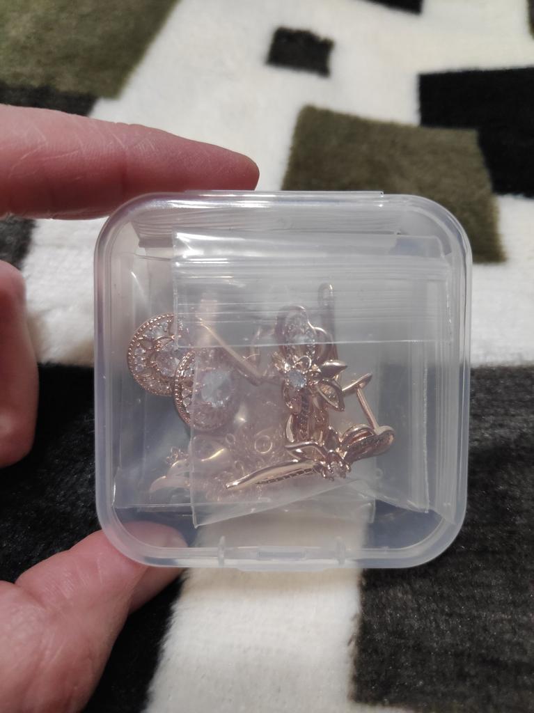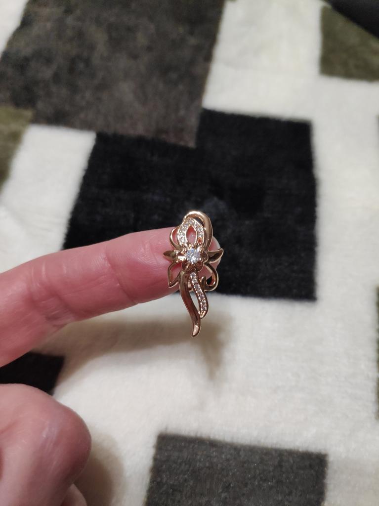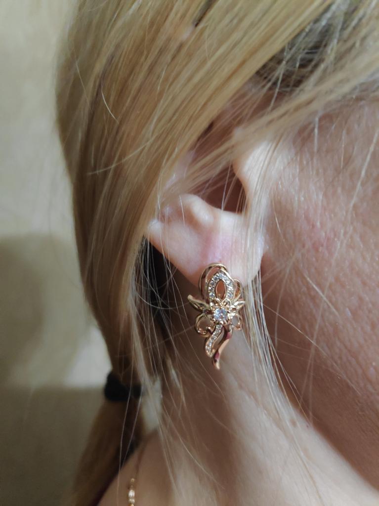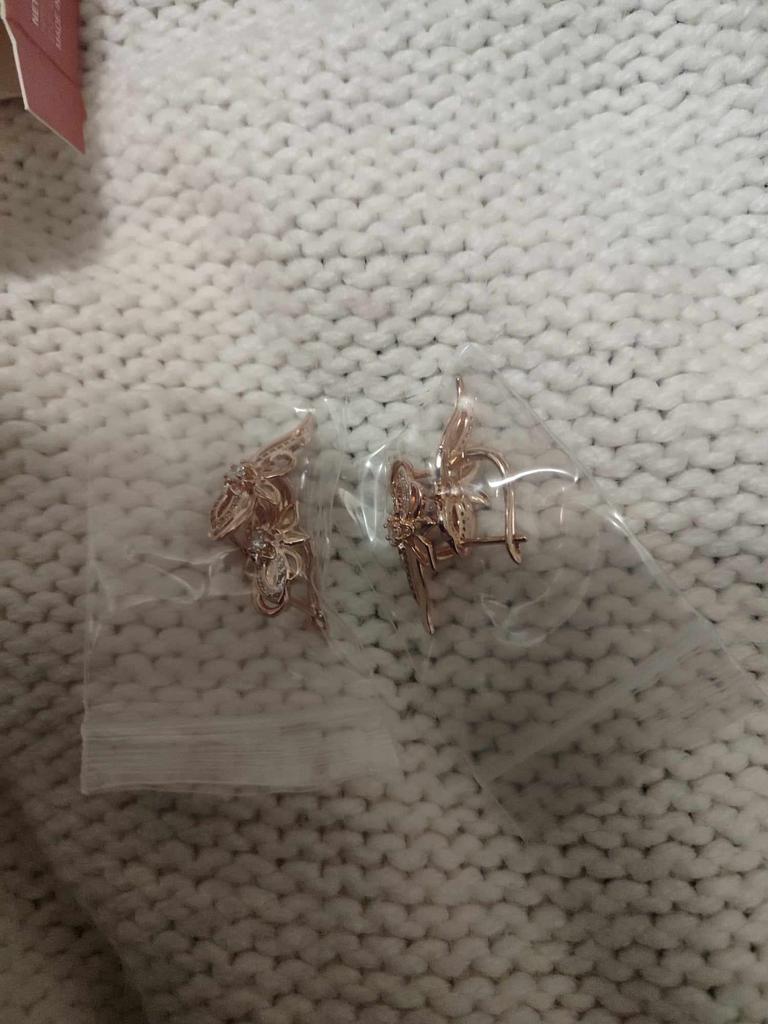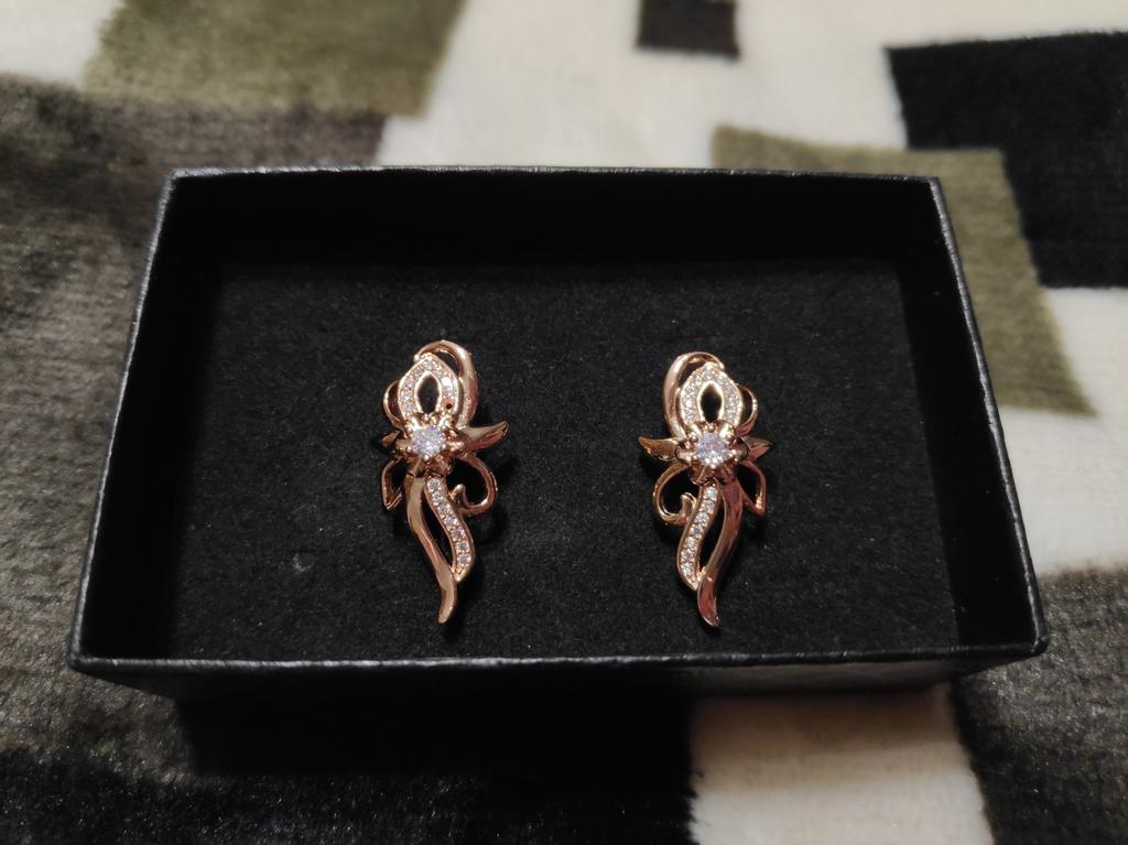 Элегантный цветок. Красивые серьги настолько аккуратно и качественно сделаны, что просто нет к чему придраться. Всё отлично! Замочки работают, камешки сверкают. Фото не передаёт эту красоту. По цвету очень похожи на золото, на втором фото смотрите кольца золотые, цвет один в один. Лёгкие, ушки не болят. Доставка почти месяц, трек полностью отслеживался. Продавец вложил товар (две пары серёг и кулон) в один контейнер, это удобно. В общем я очень рада и довольна, не думала что будут такие классные 👍😘👍 Рекомендую! Спасибо большое 🤗 продавцу за товар и Джуму за доставку.