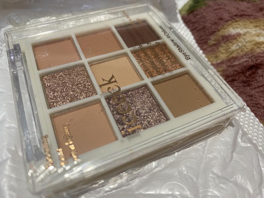 Палетка хорошая, но очень маленькая, рассчитывала, что она будет побольше. Качество для такой цены удовлетворительное 4/5. Тени ложатся хорошо, цвет немного отличается от картинки, чуть темнее, но в глаза это не бросается. При наборе на кисть слегка сыпятся, особенно ячейки с блестками. Посылка пришла за день до окончания срока, то есть через месяц.
