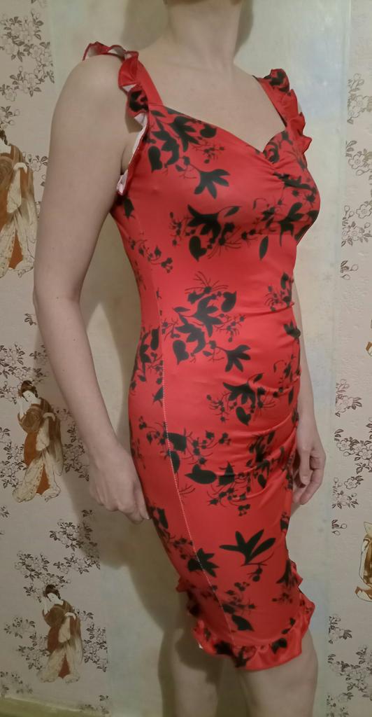 Платье классное, подчёркивает фигуру, сексопильное. Прям одела и потянуло танцевать сальсу, так мне оно представилось. Для дискотеки или вечера будет огонь. Ткань стрейч хорошо тянется я заказала М, но можно было взять и S, так как тянется хорошо, то девушки с размером L легко залезут и в M. Расцветка и модель сразу понравились по этому и купила. Единственный минус внутренняя сторона из белого материала, могли бы сделать хотя красным под цвет платья , чтоб не так бросалось в глаза, это видно на рюшах, прям выделяется. Ну а в целом заказом довольна, как по мне можно советовать к покупке, всем удачных покупок, спасибо продавцу и джуму быстро приехало, упаковка целая.