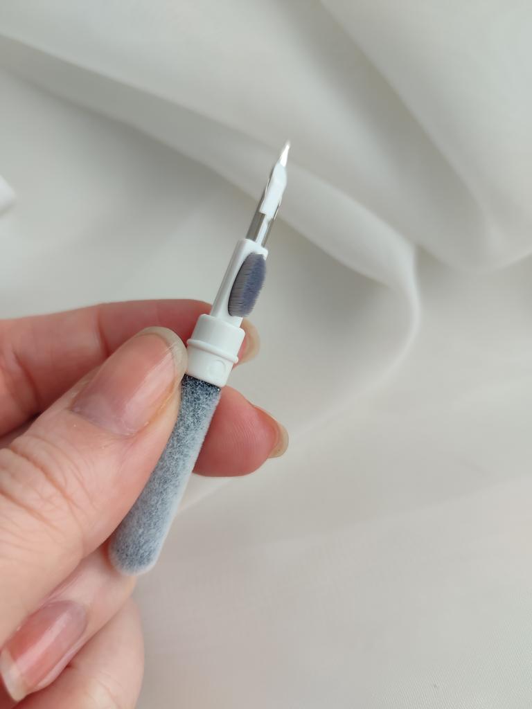 Инструмент для чистки наушников. Многофункциональная палочка/ручка - 3 в 1 с щеткой, губкой и металлическим наконечником. Заказать можно в белом или черном цвете. Доставка заняла месяц до Перми, с учетом того что заказывала в Китайский новый год, то довольно быстро отправили. Отдельная конструкция с двойной головкой: с губкой, щеткой высокой плотности и металлическим наконечником, Два наконечника имеют защитные крышки. 1. Флокирующая губка очищает гарнитуру от пыли. 2. Щетка высокой плотности очищайте грязь на звуковом отверстии наушника и других частях. 3. Металлический наконечник тщательно очищать зазоры. Ручка почти невесомая - 10.6 грамм. Размер: 110 * 17 мм. Удобно носить с собой при необходимости в дамской сумочке.