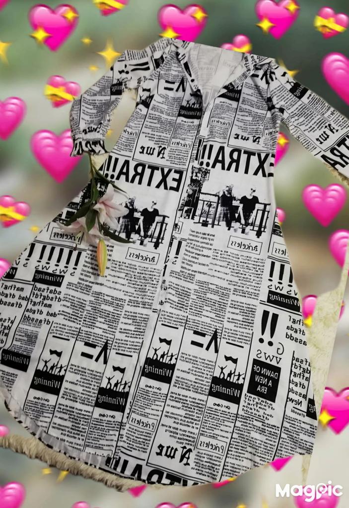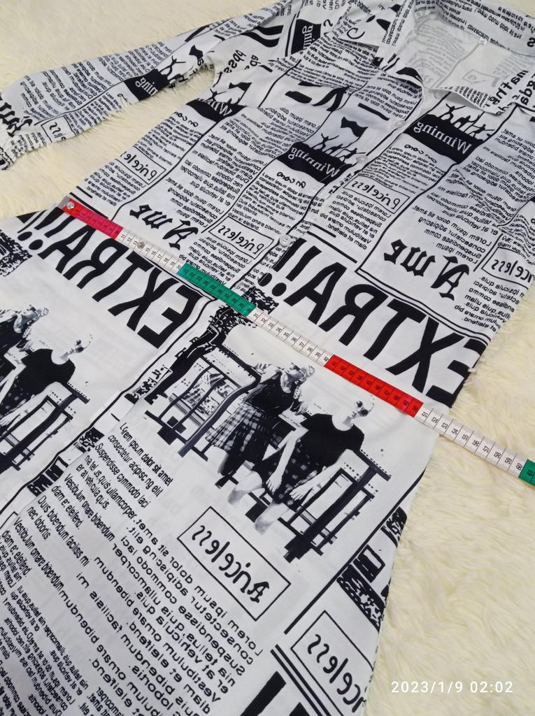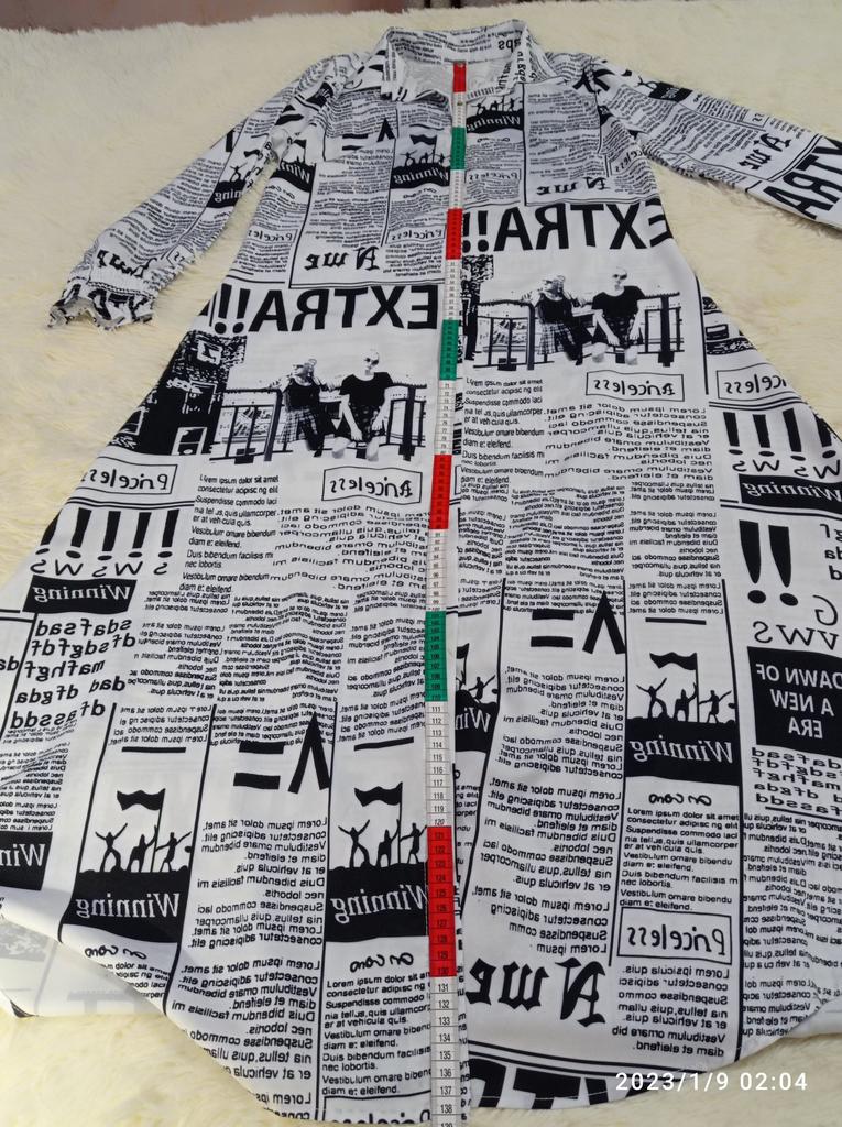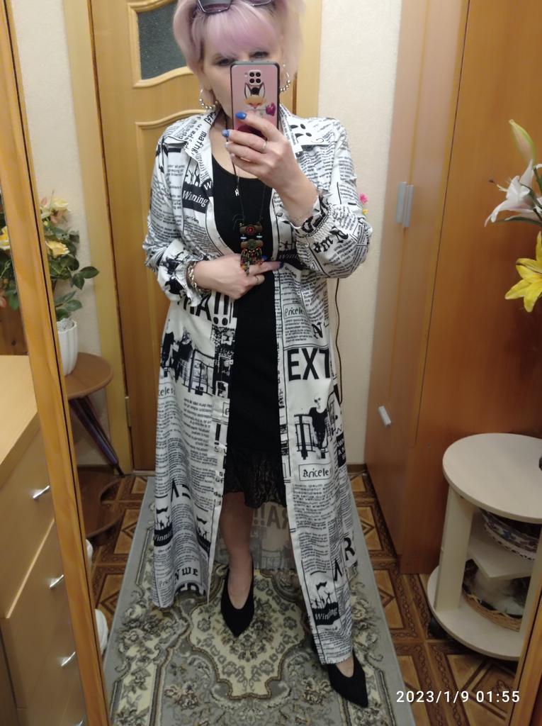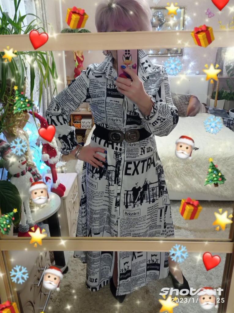 💞Платье с газетной печатью на ткани!!! Что-то мне захотелось вернуться во времена, кажется, 80-ых годов, когда такой принт был на пике моды!!!! 🤩💖!!!! Ну, как всегда, мода возвращается и снова стали появляться такие наряды все чаще!!! У продавца много расцветок, но я выбрала именно этот! ☝😍 💞Вот и это платье-рубашка а-ля 80-ые!!!🤩💃💃💃😉теперь будет дополнять мой гардероб для разнообразия!!! 💞Ткань не очень тонкая, синтетическая, похожа на шёлк, конечно же, электризуется ☝️и, мне кажется, будет мяться! 🤔, легко гладится!!! 💞 💞Пошив простой рубашечный, но приталенный и сильно расклешонный книзу🌹Полы закруглены! 💞Что меня сильно удивило 🤭- это наличие выточек😉☝️!!! Обалдеть!!! Это такая редкость вообще в наше время 😘🤩😉💃💃💃Конечно же это большой плюс☝️☝️☝️! ❗☝❗☝❗☝❗Внимание! Есть отличие от фото продавца!! Рукава не прямые, а низ рукава собран на тонких резиночках! Для меня это плюс 👌👌👍! Редактирую❗❗❗ Девочки! Оказывается продавец изменил промофото!!! Добавил ряд фото с рукавами 👗платьев на резинках☝🥰🥰🥰На момент заказа этих фото не было😊Были платья с ровным рукавом,🤔 Вобщем запутали меня🤔... Ну тогда всё👌Хотя не знаю, у меня фото периодически меняются!..... 💞Пошито платье хорошо, пару ниток--не проблема!!! 💞На свои параметры (округляю) 100-78-100 подошло идеально!Таблица у продавца очень близка к истине!, ✌️🤝Только длинное, до пят на мой рост 164!!! Так что высоким девочкам можно смело брать!!!☝️👍 Ну а у меня несколько вариантов:обрезать, носить с каблуками, либо носить с ремнями!!!!До лета подумаю 🤩😉! 💞Носить буду обязательно! Понравилось🥰!!!💯💯💯💯 Тем более, что такую вещь можно носить в различных вариантах!!! Можно надевать как платье, но только не в жаркую погоду точно! ☝️Можно накидывать как в второй слой на платья, блузки, брюки, легенсы.... Уйма вариантов, кому как нравится!!!! 😘🤩😉🙌🙌🙌