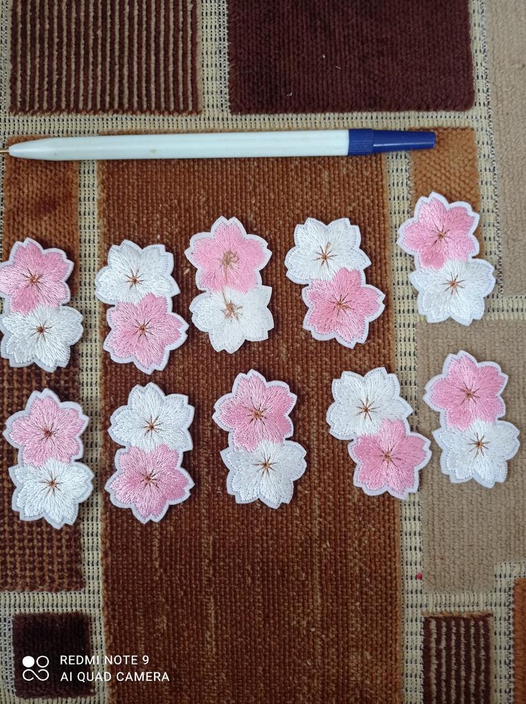Цветочки небольшие. Пришли все белого цвета. Вышивка аккуратная, нигде нитки не торчат. Приклеиваются очень легко. Дырку на платье прекрасно закрыли. Выглядят очень прилично. Рекомендую. 🙂👍