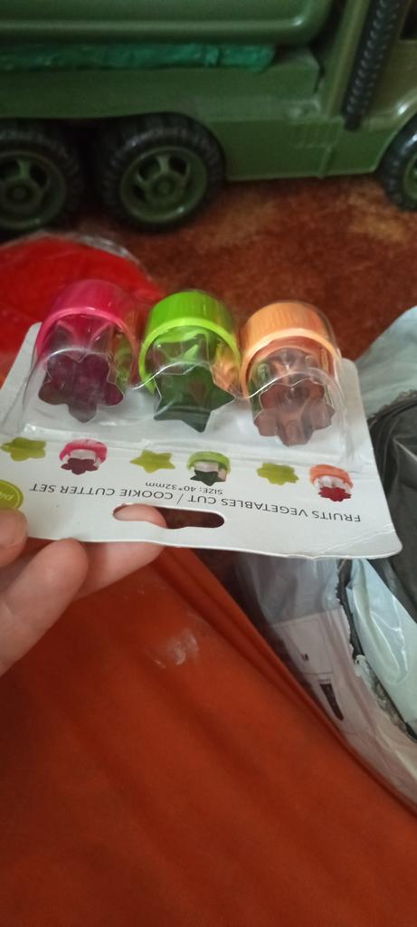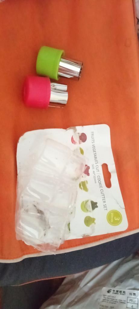 Хорошенькие формочки-вырезки! Маленькие, аккуратненькие! Сердечко, цветочек в 5 лепестков и цветочек с "много" лепестками. Оранжевый "цветочек" немного кривовато вставлен в держатель, но, думаю, это исправить можно. Не хлипкие! Взяла для вырезывания сыра, колбаски для малыша или для украшения на стол. Ещё видела, такие нарезки из кабачка, морковки, перчика для закупок, хочу попробовать!!! Закажу ещё другой формы! Рекомендую!!!!! 🥰