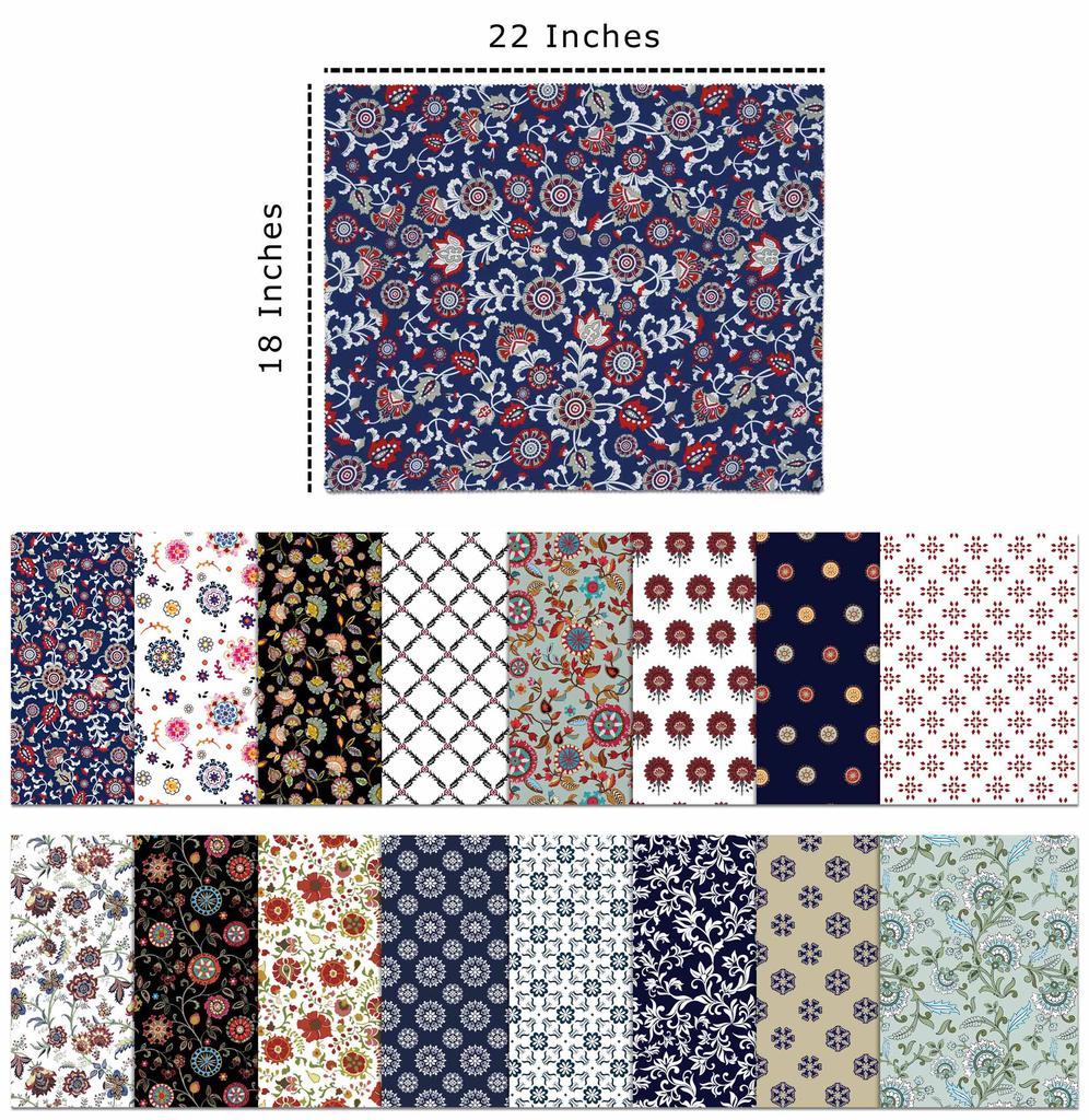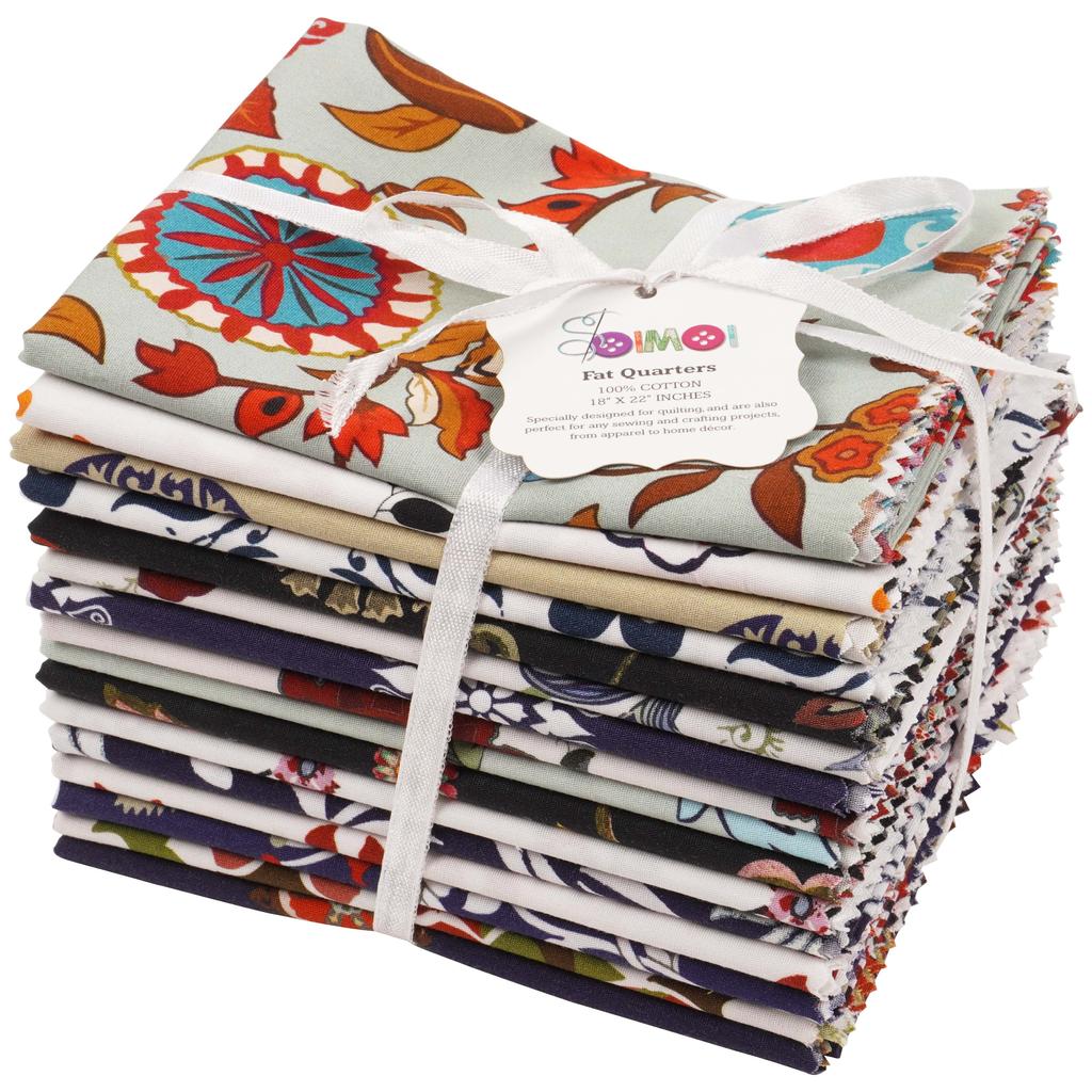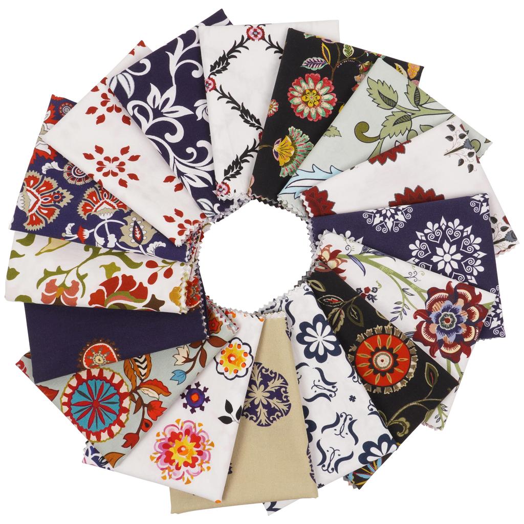 Soimoi Комплект из 16 штук — четверть толстых предметов — сюзане с цветочным принтом, 18 x 22 дюйма, лоскутное шитье своими руками — предварительно нарезанная ткань из 100 хлопка для квилтинга, сине-белая и