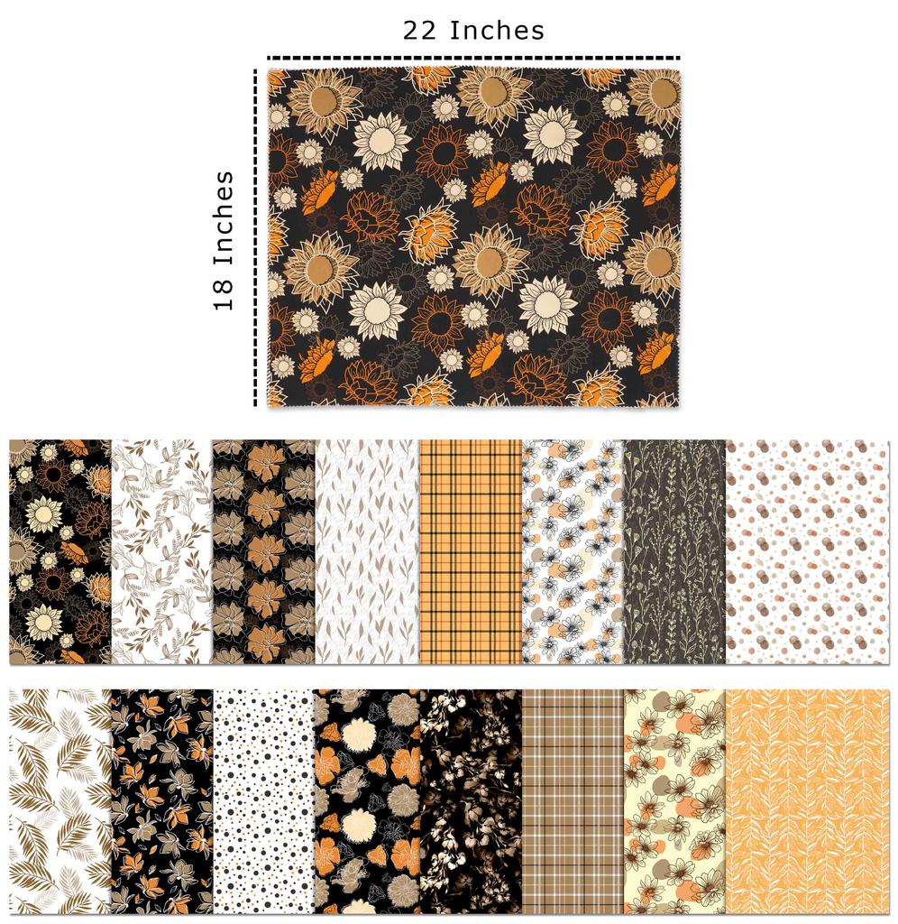 Soimoi Комплект из 16 кусков ткани Fat Quarter с осенним цветочным принтом 18"x 22" для самостоятельного лоскутного шитья - 100% хлопок, предварительно нарезанная ткань для квилтинга, оранжевая и