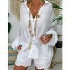 5XL большие размеры топы льняная рубашка женская белая туника с длинным рукавом кардиган повседневные свободные пуговицы с отложным воротником блузки рубашки