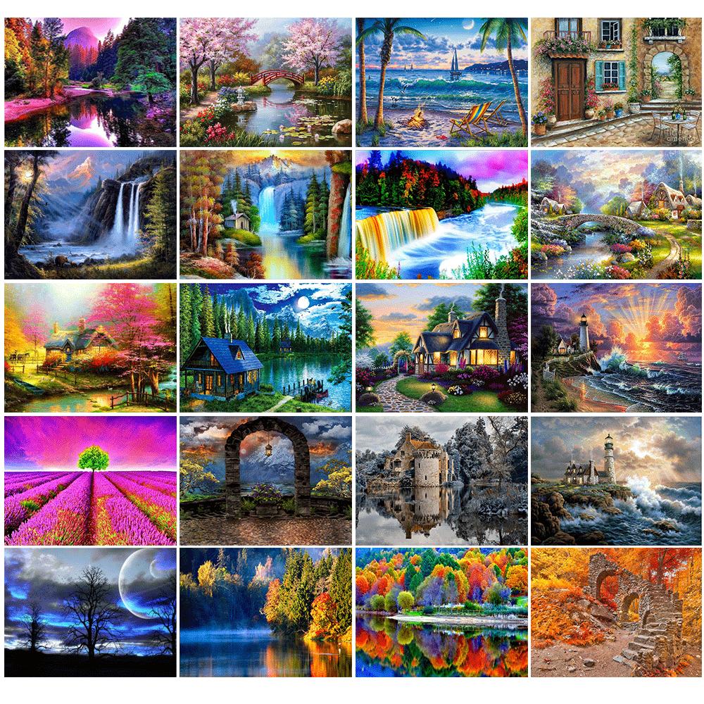 Пейзаж Алмазная картина 5D Diy Полный круг Алмазная вышивка Пейзаж Мозаика Картина Горный хрусталь Украшение дома — купить товар онлайн с бесплатной доставкой по всему миру!