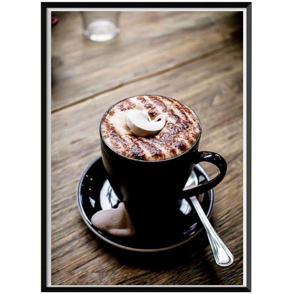 5D Алмазная картина Полный Алмаз Черная чашка Кофе Круглая Алмазная мозаика Узор Домашнее украшение Сделай сам Ручная работа