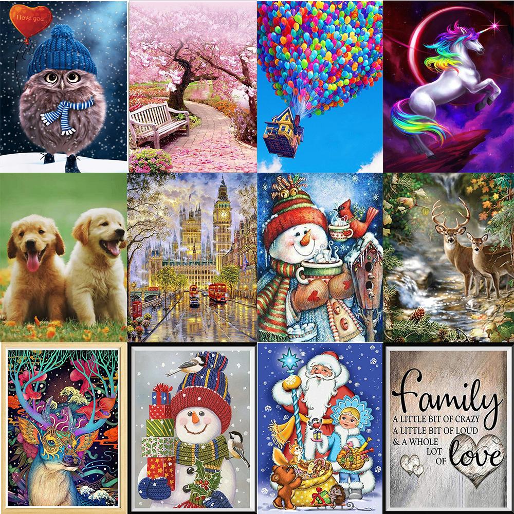 5D Алмазная картина Полный алмаз Животный Пейзаж Круглый Алмазная мозаика Узор Домашнее украшение Сделай сам Ручная работа