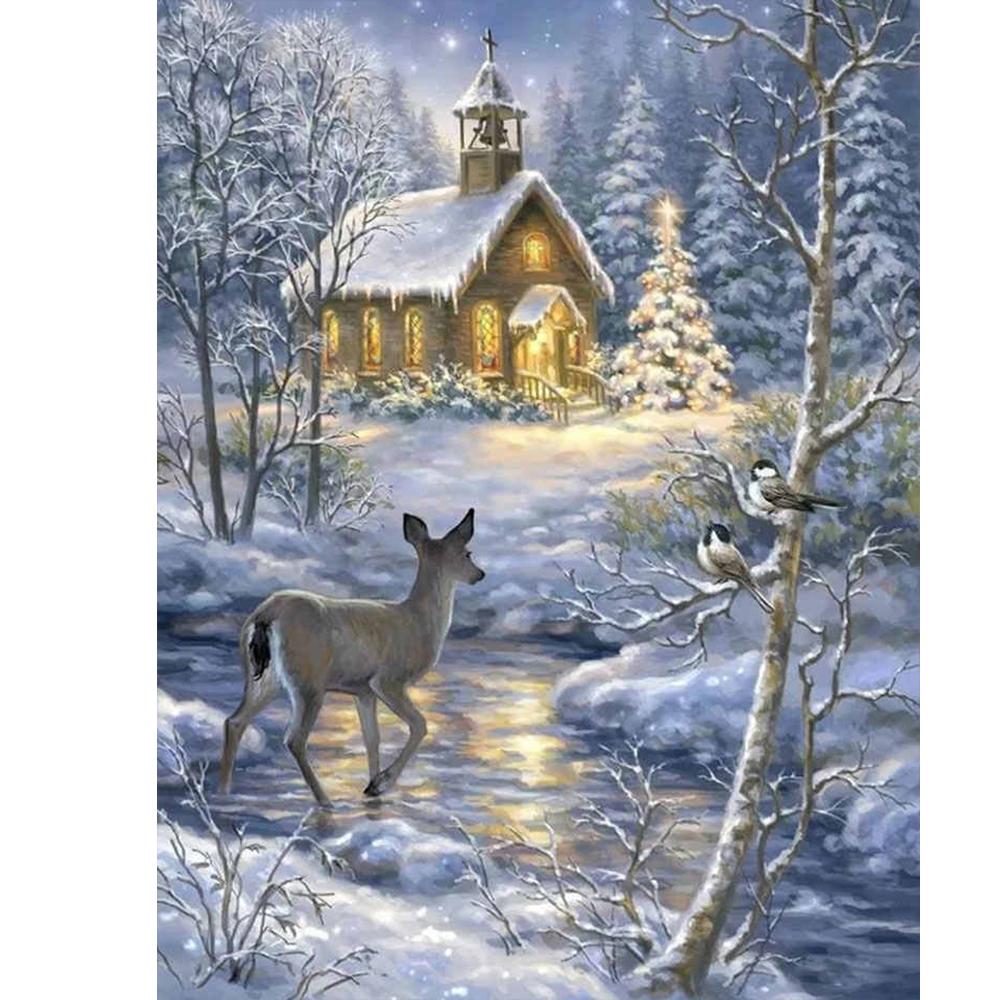 5D алмазная живопись «сделай сам», Рождественский пейзаж, полный алмазов, ручная работа, алмазная вышивка, мозаика, украшение для дома, спальни, подарок