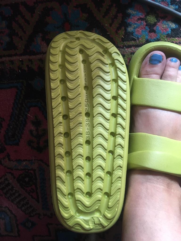 Когда пришли, я обрадовалась, попробовала погулять с собакой, но жутко натерла ноги, все-таки великоваты, отправила на дачу, они там тоже сначала не зашли)) но вот через годик на даче я понимаю, что они классные и удобные, как раз для такого места))
