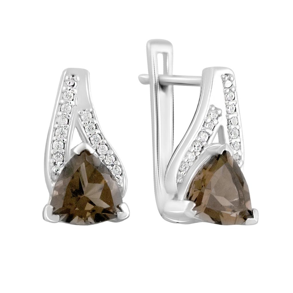 серебряные серьги с натуральным раухтопазом (дымчатым кварцем) 0.801ct