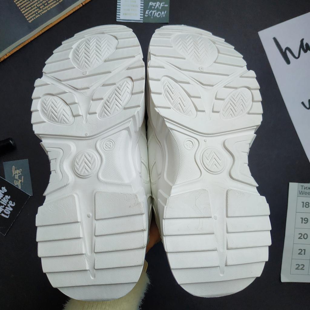 БЕЛЫЕ КРОССОВКИ С ОРИГИНАЛЬНЫМИ ШНУРКАМИ 👟👟 + видео Покажу ещё классные кроссы из классного магазина TUINANLE. Привлекли мое внимание оригинально заправленные шнурки и ещё и сбоку как флажок Посылка пришла в Украину за 16 дней Упаковано в почтовый пакет и пакет в пупырку. Внутри были вкладыши из пенопласта . При транспортировке не пострадали. Запаха постороннего при распаковке не было Как и заказывала, пришли белые, хотя они скорее молочные. По ссылке есть ещё бежевые и черные Материал здесь естественно ПУ, поверхность есть с фактурой под кожу, есть матовая гладкая и есть полочка вставка глянцевая лакированная. Модель на шнурках. Причем здесь не просто они функционируют. Есть ещё и декоративные элементы, протянуты через люверсы. Плюс на шнурке сбоку висит как флажок с буквенным принтом Подошва с виду массивная, но лёгкая, вспененная. Спереди подошва - 3 см, сзади - 5 см. Вес одного кроссовка - 400 г Стелька вспененная, удобная, съёмная. Качество хорошее, дефектов, следов клея нет. Я взяла 38. По стельке длина 23 см, стелька не плоская, лучше брать с запасом. На мой 36 хорошо Не люблю я массивные, но эти классно смотрятся даже с моими худыми ногами. Удобно в них, не тяжело. Мне понравились БУДЬТЕ ВСЕГДА КРАСИВЫ👸