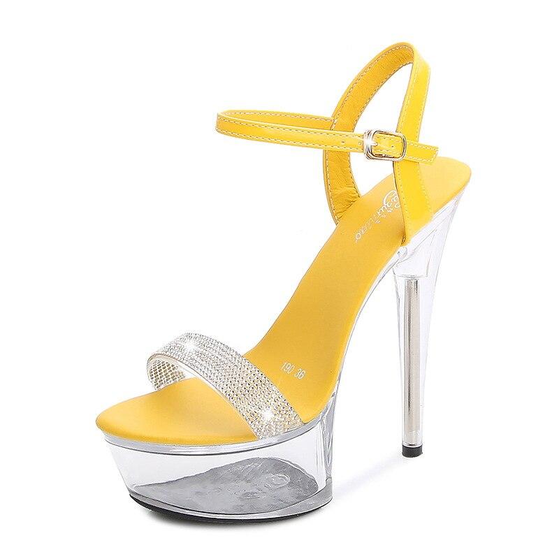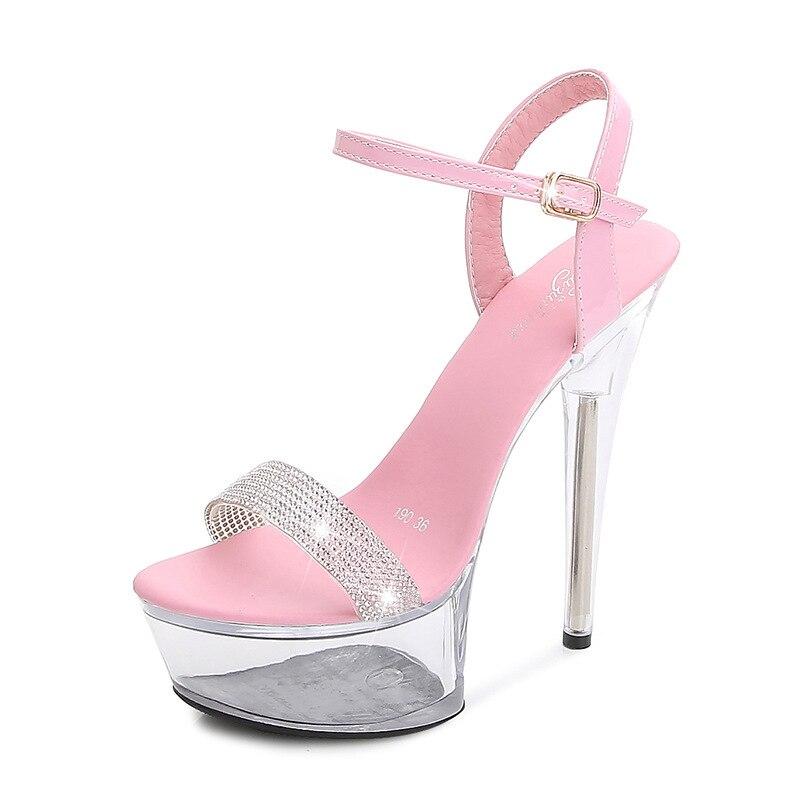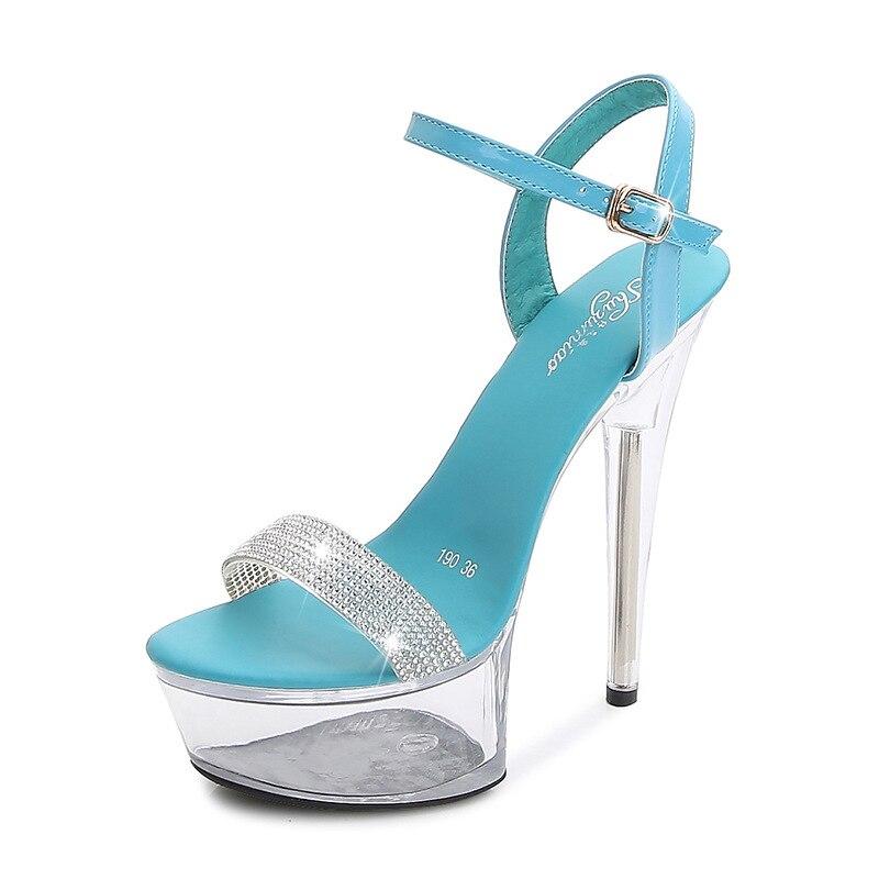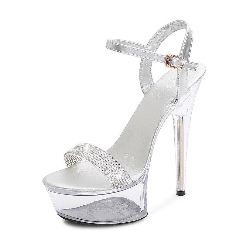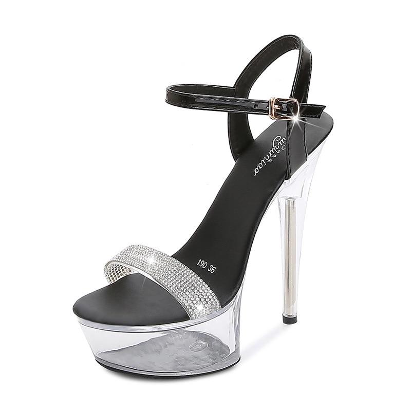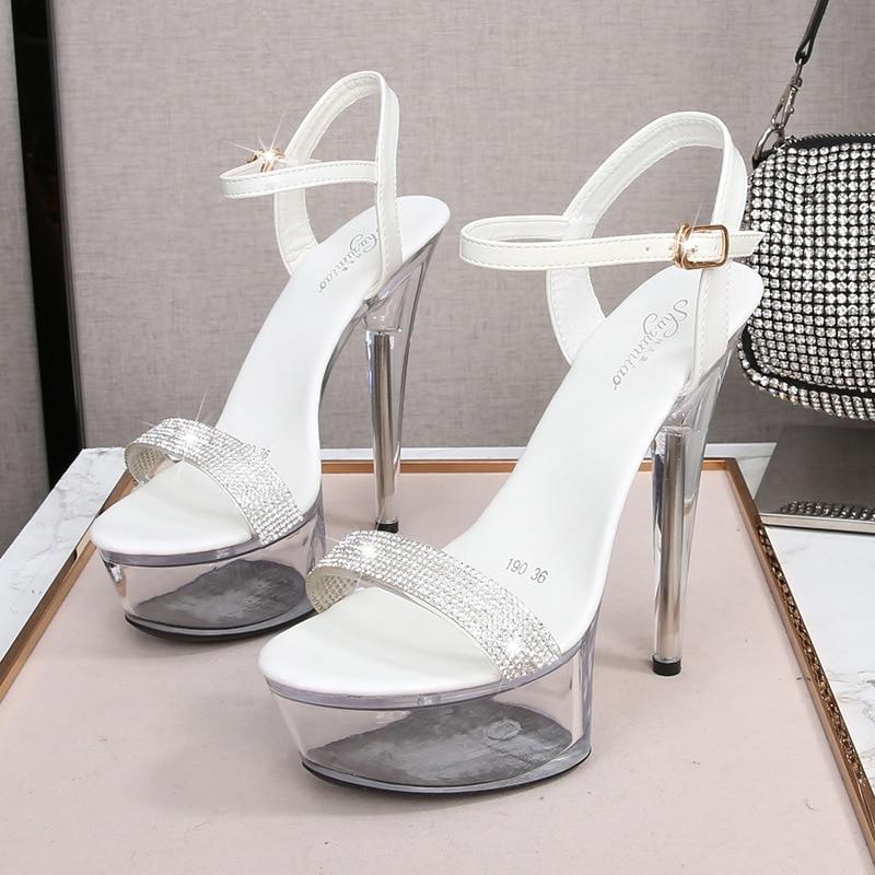 Женские туфли на шпильке, пикантные прозрачные тапочки с кристаллами, свадебная обувь, банкетная обувь, серия 190, каблук 14,5 см, платформа 4,5 см, LFD