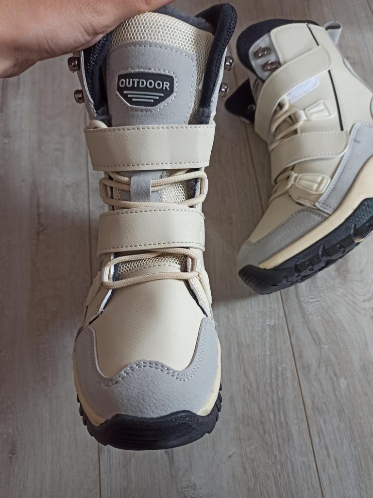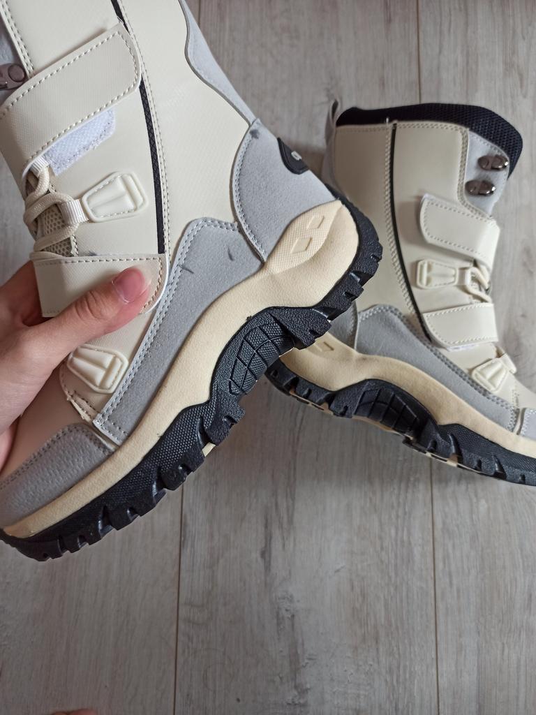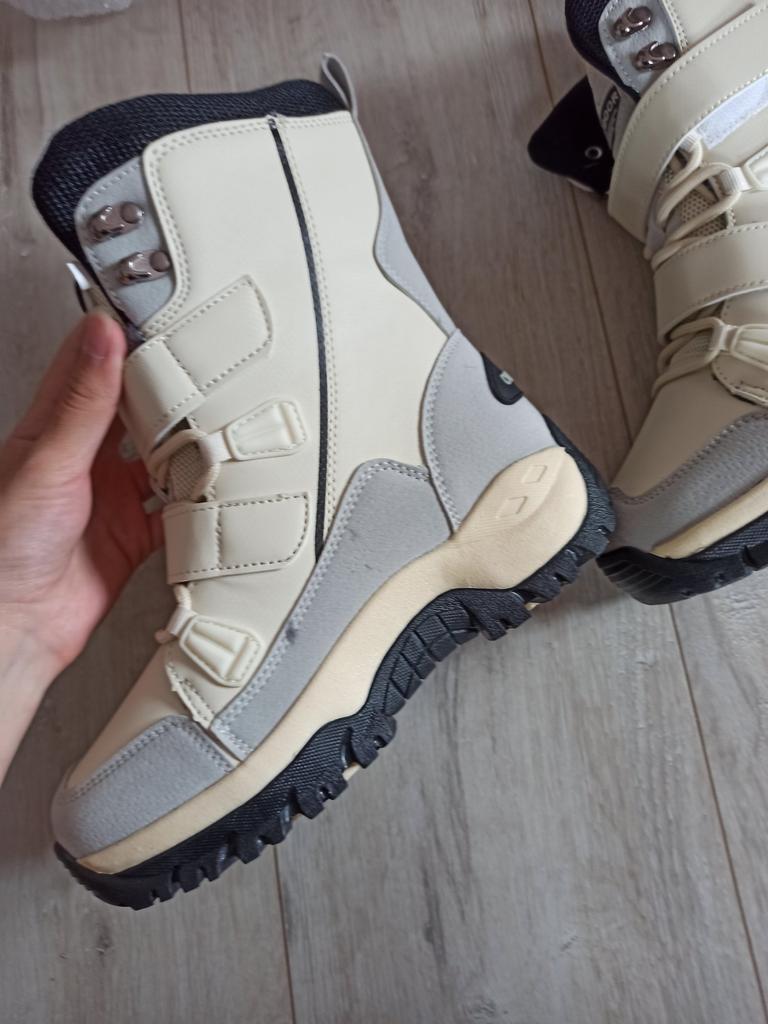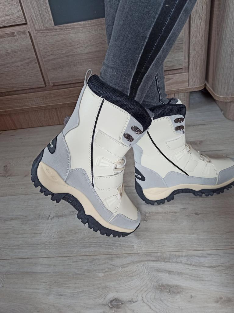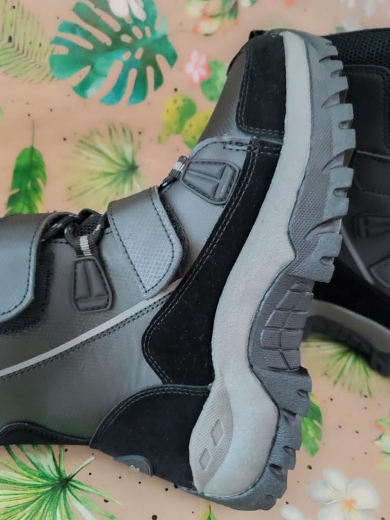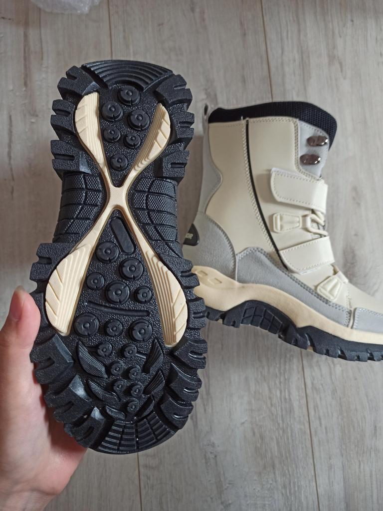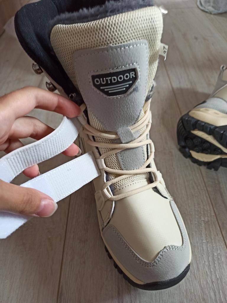 Классные женские сапожки в спортивном стиле Сапоги отличные. Материал плотный, крепкий, даже кошка не подрала когтями. Для мокрой зимы идеально( как для мокрого снега и переменных луж так и на скользкую и холодную зиму) Подошва рефленая и нескользкая . Заказала я 27 размер на стопу 23,5-24 см , можно одеть на нормальны носок , но если вы любитель тепла и носите теплючин объемные носки то лучше брать на размер больше. Сапоги на шнкровках и липучках, полностью регулируются по ноге. Рекомендую Fajne damskie botki w sportowym stylu Buty są świetne. Materiał jest gęsty, mocny, nawet kot nie pazura. Idealny na mokre zimy (zarówno na mokry śnieg i zmienne kałuże, jak i na śliskie i mroźne zimy) Podeszwa jest prążkowana i antypoślizgowa. Rozmiar 27 zamówiłam na stopę 23,5-24 cm, możesz założyć zwykłą skarpetę, ale jeśli jesteś miłośnikiem ciepła i nosisz obszerne ciepłe skarpety, lepiej wziąć rozmiar większy. Buty ze sznurowadłami i rzepem, w pełni regulowane na nogawce. polecam