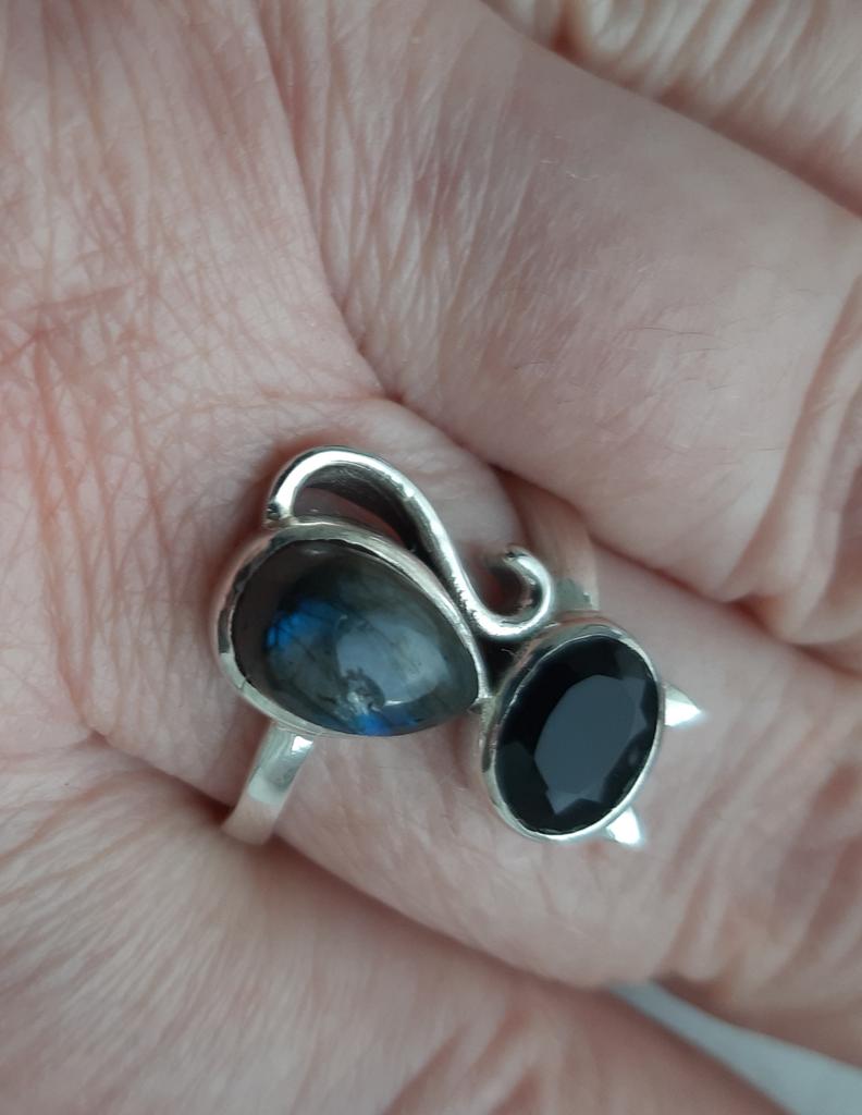 Кольцо с кошкой, кольцо с черным ониксом, ювелирные изделия ручной работы из стерлингового серебра 925 пробы, серебряное кольцо с изображением животных — купить товар онлайн с бесплатной доставкой по всему миру!