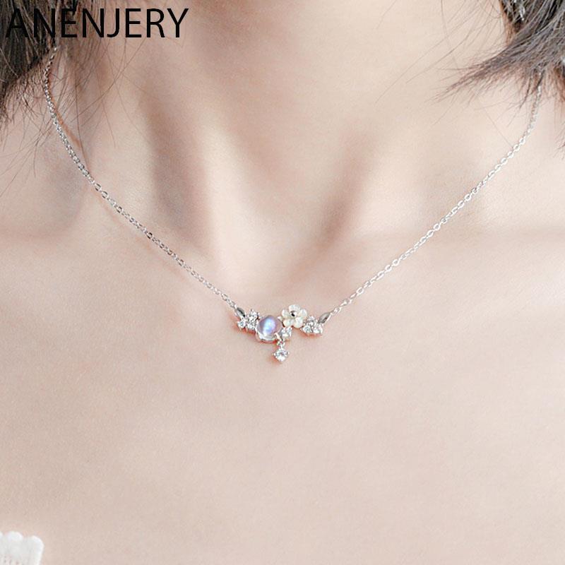 ANENJERY серебряное цветное ожерелье с цветком в виде кристальной ракушки для женщин, милая цепочка на ключицы, ювелирные изделия для девочек, оптовая продажа — купить товар онлайн с бесплатной доставкой по всему миру!