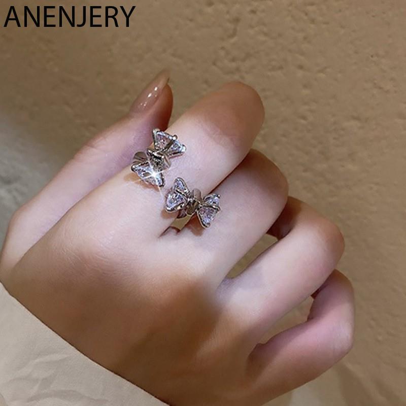 ANENJERY открытое кольцо с блестящим цирконием и бантом для женщин, изысканные корейские модные аксессуары — купить товар онлайн с бесплатной доставкой по всему миру!