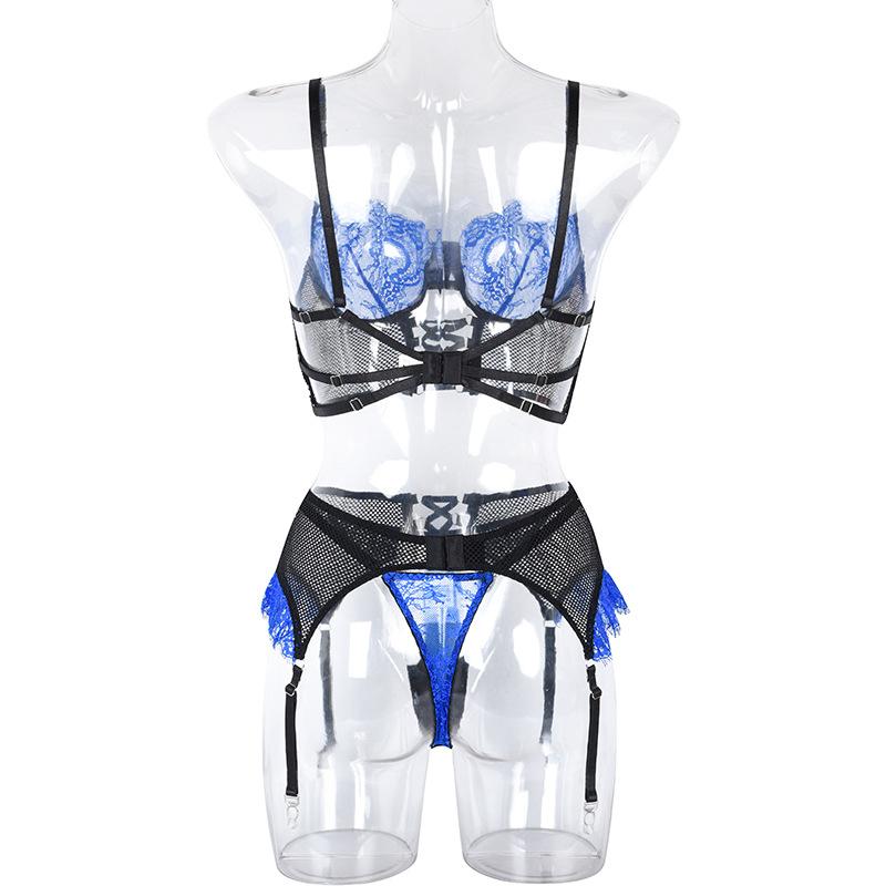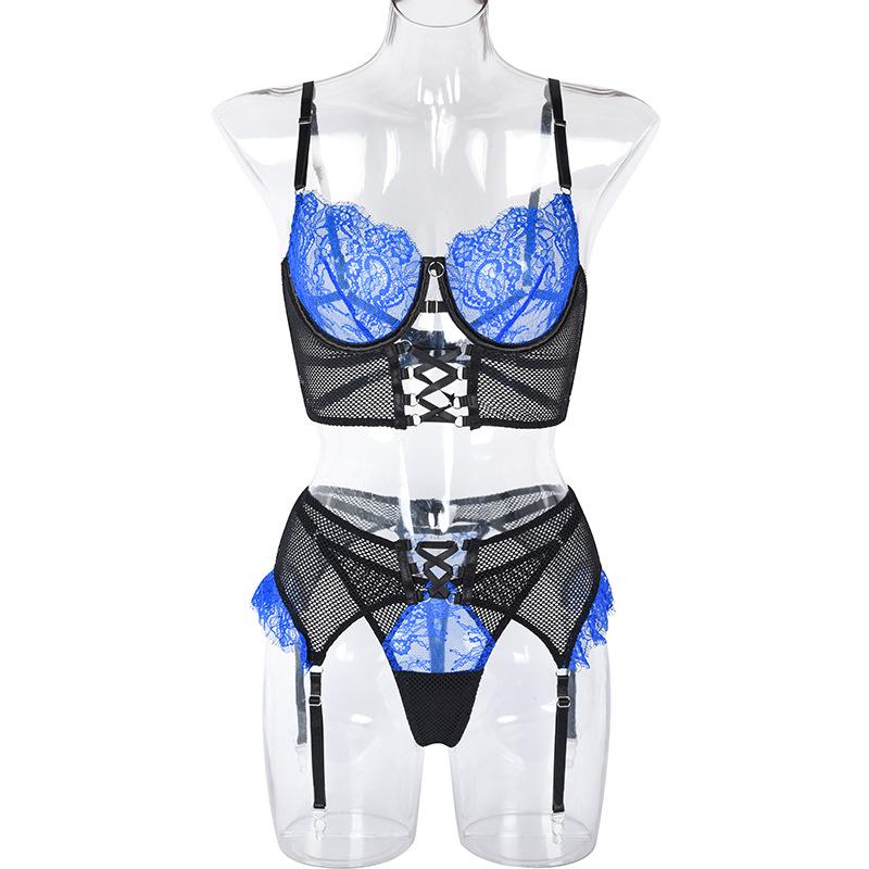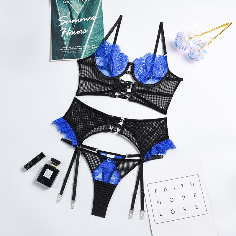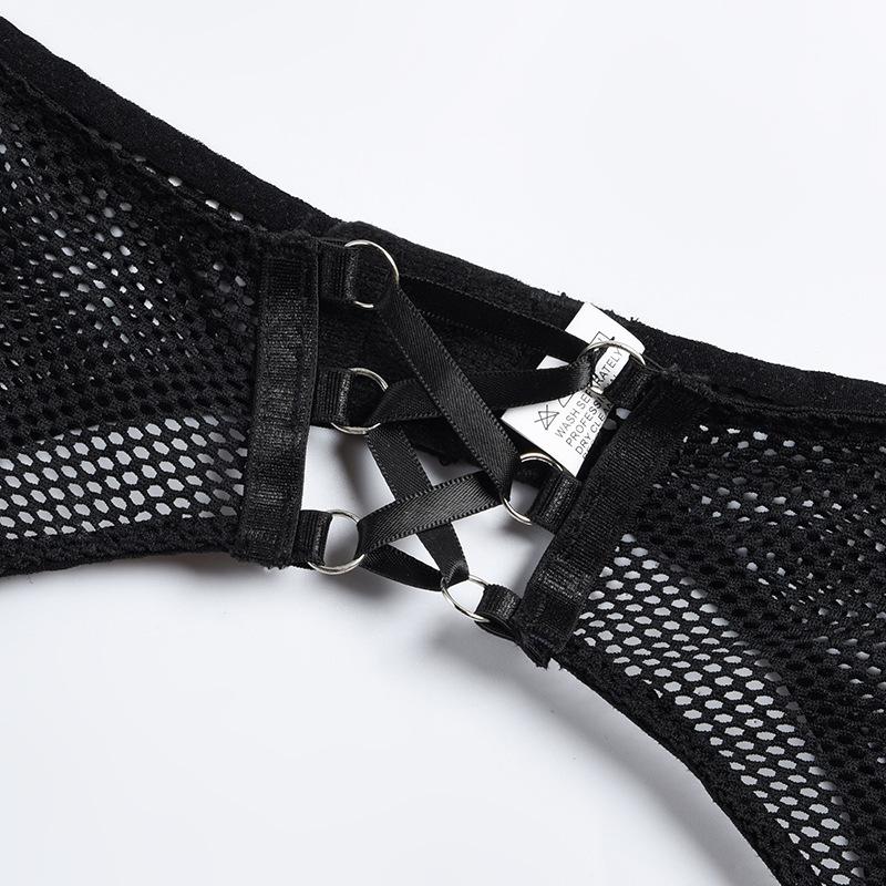 Aduloty Женское сексуальное женское белье, комплект с бюстгальтером на косточках, летний тонкий сетчатый прозрачный эротический комплект нижнего белья с подвязками, стринги, комплект из трех предметов