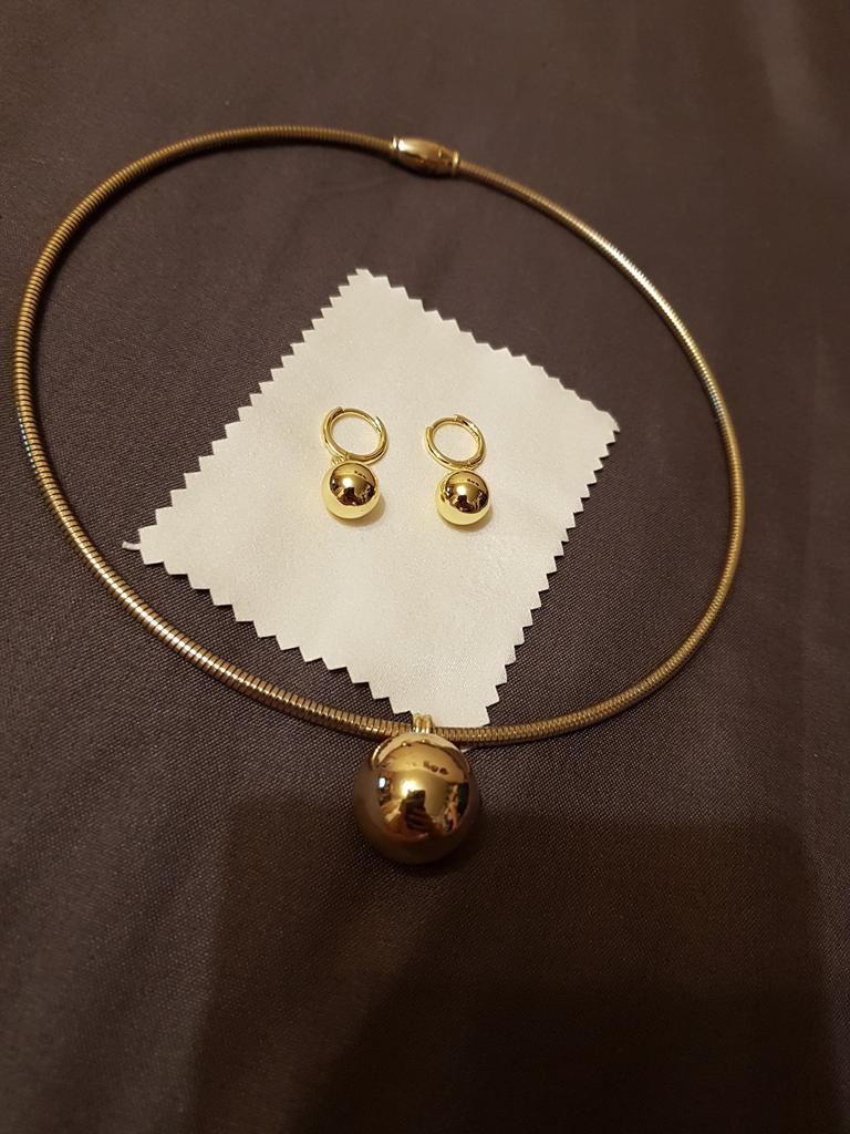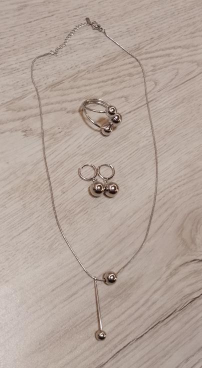 Купила сразу кольцо, серьги и ожерелье по отдельности, но как комплект смотрится хорошо. Как носится скину позже отзыв, надо понять реакцию с кожей, с водой. А так очень современно и модно, мужу тоже понравилось ☺
