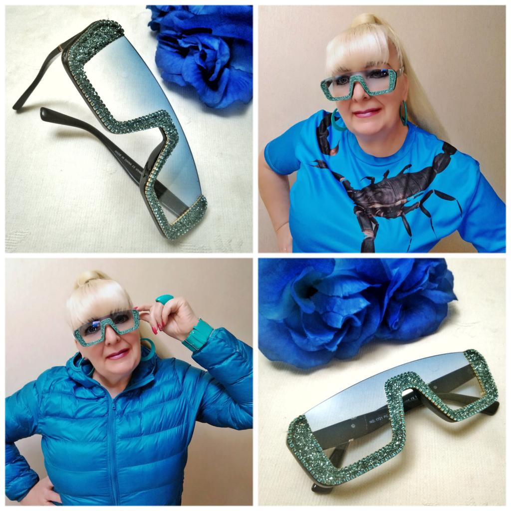 💙🕶️💎 СТИЛЬНЫЕ ГОЛУБЫЕ СОЛНЦЕЗАЩИТНЫЕ ОЧКИ СО СВЕРКАЮЩИМИ СТРАЗАМИ 💙🕶️💎 👉Жми на СЛАЙД ШОУ! Это уже мои вторые очки со сверкающими стразами. Чуть ранее я рассказывала о красных точно таких же очках. Обзор на ту модель есть в моем профиле от 23 августа. Мне понравились оба варианта: и голубые, и красные. Оба цвета хороши каждый для своего образа. Только голубая модель очков имеет не такой ярко выраженный градиент, как у красных очков. Он более спокойный и плавно переходит от голубого цвета к прозрачному. И стразы, украшающие нижнюю часть на голубых очках, выполнены практически в тон стёкол. У красной же модели стразы разноцветные. Я, как любительница гламура и блеска, не могла не купить обе модели солнечных очков со сверкающими стразами. А увидела я эти очки у Анастасии Оптимистика, за что ей большое спасибо! Ведь очки потрясающе красивые! На голубых очках как и на красных пластик очень крепкий, плотный и качественный. Носоупоры литые. Оправа к очкам закреплена с помощью металлических миниатюрных шурупов. На дужках очков имеется серийный номер и надпись: made in China. Линзы у моей модели, как я и говорила выполнены в голубом градиенте и благодаря этому восприятие окружающего мира становится необычно красивым. Серое невзрачное небо будет выглядеть ясным и голубым. Линзы у очков полупрозрачные, поэтому Вашему собеседнику будут видны Ваши глаза и это по отношению к нему даже уважительно. Качество изготовления у очков отличное! Претензий нет. Заказом довольна и с удовольствием буду носить как голубые очки, так и те красные под соответствующий образ. 🎼🎵🎶В слайд шоу использована композиция "The Blue Cafe" в исполнении Chris Rea.