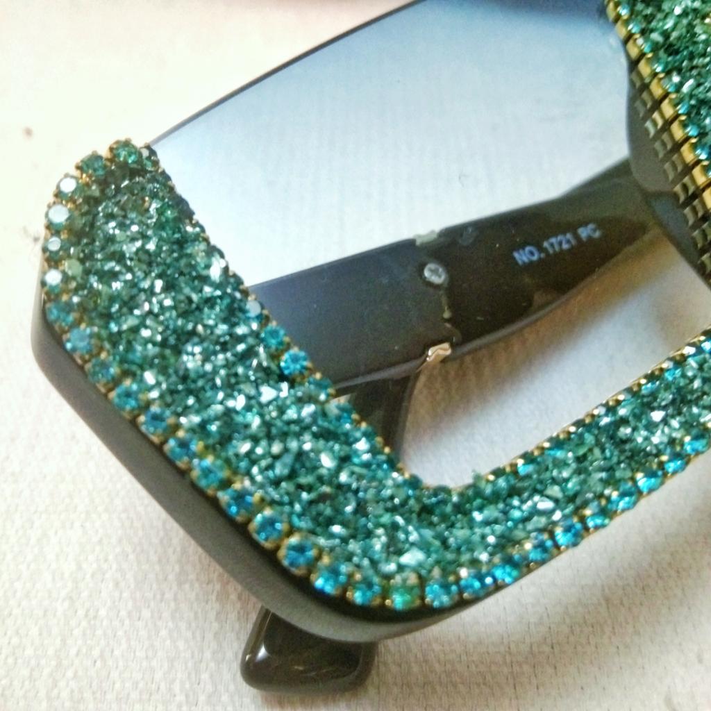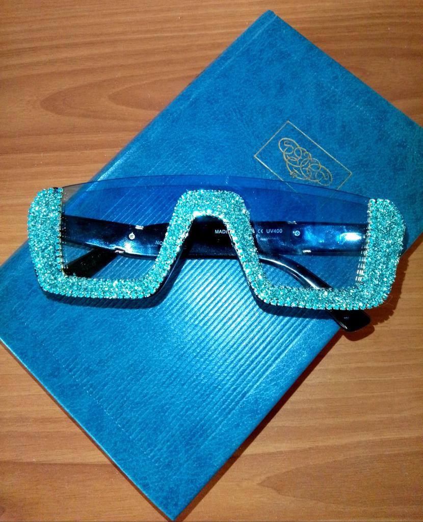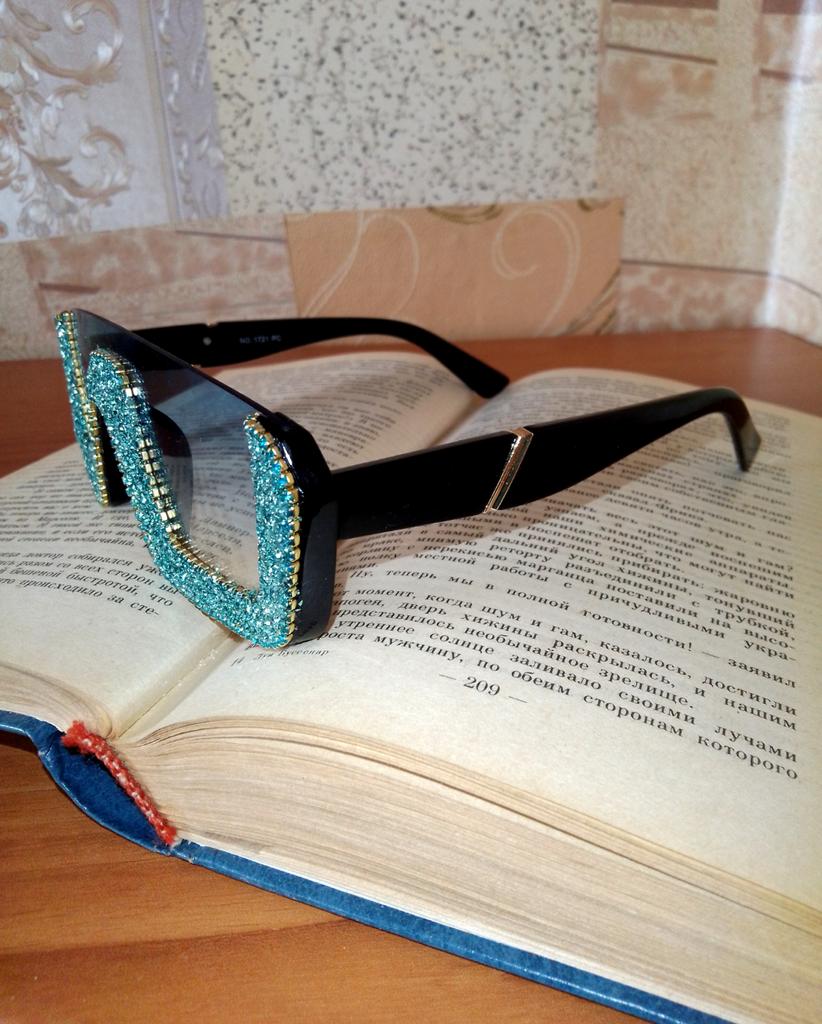 Друзья💞, креативные бирюзовые солнцезащитные очки. У продавца широкий выбор цвета. Пластик. Размер очков 14,5×4,2 см. Переносица 1 см. Душки 14,5 см. Стразы и блёстковое напыление. Блёстковое напыление шириной от 0,7 см до 1,2 см. Блёстковое напыление активно сыпится, поэтому советую смахнуть обсыпания тряпочкой, а затем покрыть бесцветным лаком для ногтей, как я. Только не используйте новомодный лак для сушки в лампе, а возьмите обычный, который высохнет сам. Упаковка: 2 пакета, прокладочная бумага на блёстковом напылении и тряпочка для очков. На мой взгляд плохая упаковка для очков. Мне повезло, что была сборная посылка. Поэтому и вам советую заказывать мелочёвку единовременно- тогда есть шанс на сборную посылку. Доставка 27 дней в Карагандинскую область. Активно рекомендую👍!