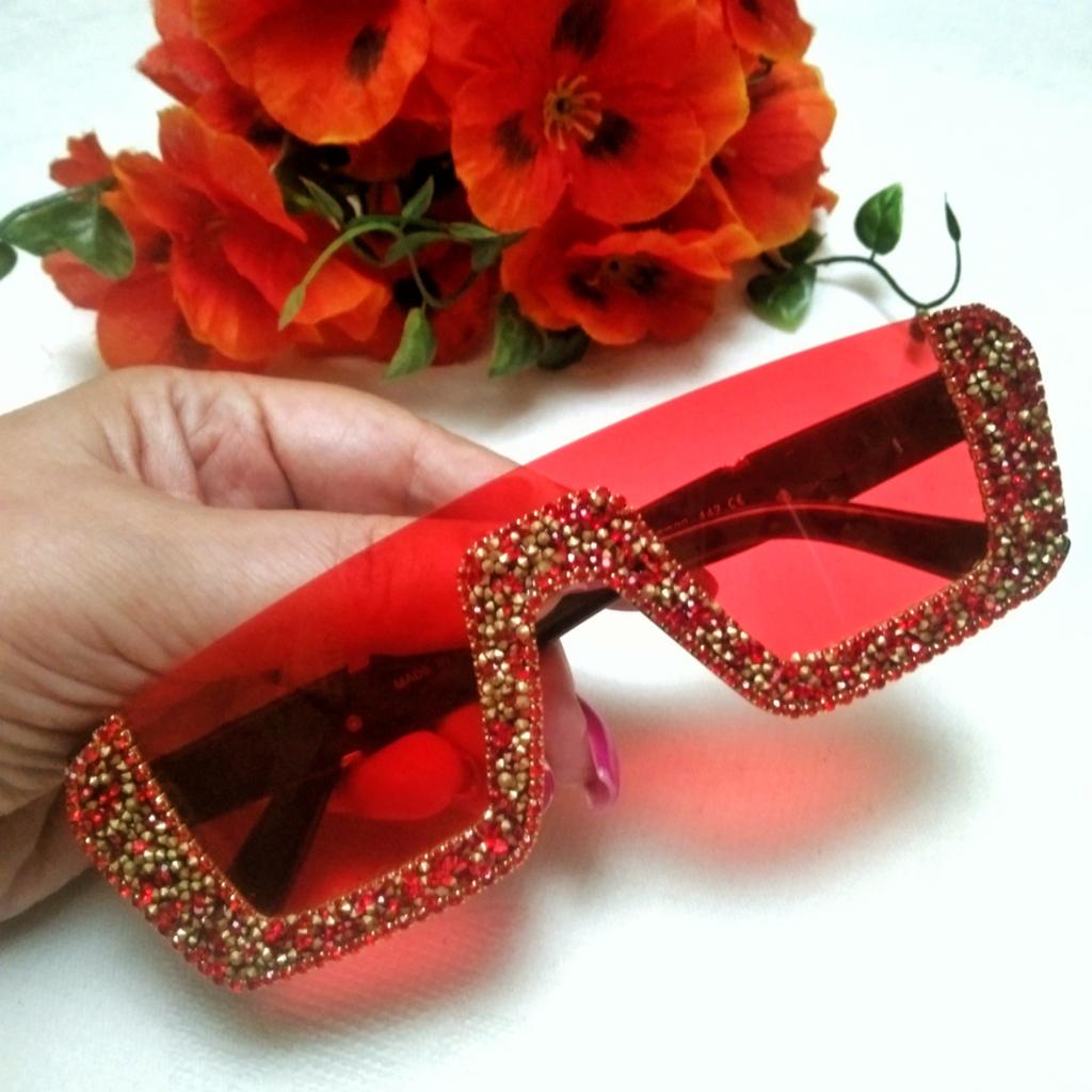 ♥️🕶️💎 СТИЛЬНЫЕ КРАСНЫЕ СОЛНЦЕЗАЩИТНЫЕ ОЧКИ С РАЗНОЦВЕТНЫМИ СТРАЗАМИ♥️🕶️💎 👉 Жми на СЛАЙД ШОУ! Я, как любительница гламура и блеска, не могла не купить эту сверкающими стразами модель. А увидела я эти очки у Анастасии Оптимистика, за что ей большое спасибо! Сразу скажу, что покупкой только красных очков я не ограничилась и заказала ещё и синие. Но они пока в пути. А сейчас буду хвалить красную модель. Очки потрясающе красивые! Нижняя часть линз декорирована разноцветными мелкими стразами, которые держатся на клее. Такое расположение страз я вижу впервые. Обычно стразами украшают очки в их верхней части. Но идея мне понравилась и я считаю её оригинальной. Пластик у очков очень крепкий, плотный и качественный. Носоупоры литые. Оправа к очкам закреплена с помощью металлических миниатюрных шурупов. На дужках очков имеется серийный номер и надпись: made in China. Линзы у моей модели красные и благодаря этому восприятие окружающего мира становится ярким и необычным. Линзы полупрозрачные, поэтому Вашему собеседнику будут видны Ваши глаза и это по отношению к нему даже уважительно. Качество изготовления у очков отличное! Претензий нет. Заказом довольна и с нетерпением жду ещё и синих таких же очков. 🎼🎵🎶В слайд шоу использована композиция "Calling Your Name" в исполнении группы E-Type.