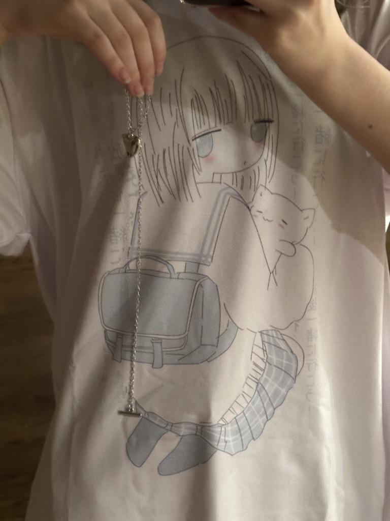 Японские футболки с аниме Kawaii для женщин, милые пары, милые футболки с мультяшным принтом, футболки, белые топы, летние