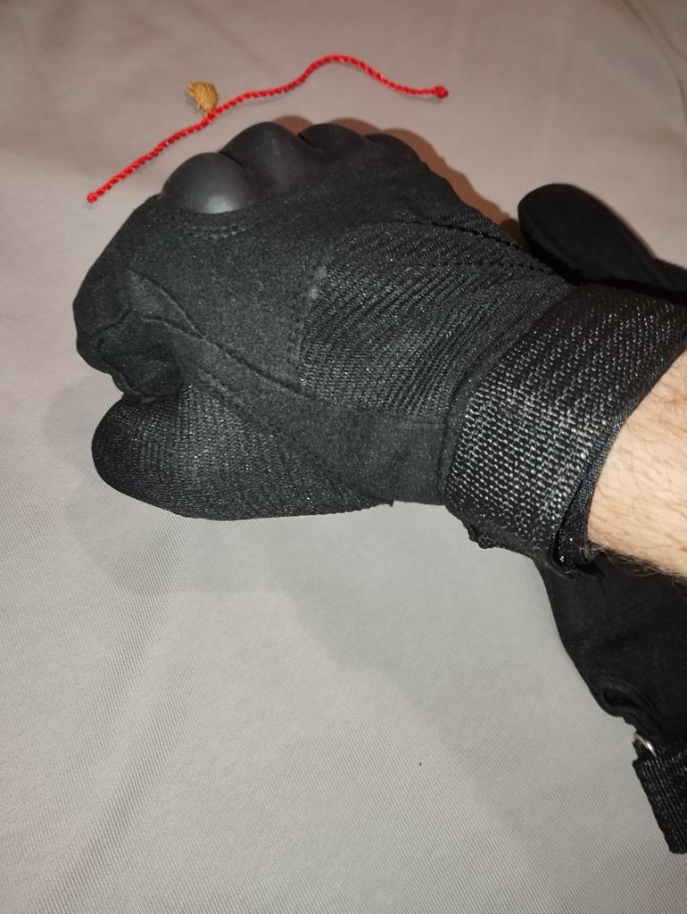 Левая перчатка села хорошо, а правая почему-то маловата. Липучки фиксирующие перчатки на запястье короткие. При надевании могут вылетать из кольца. Брал самый большой размер, но жмут. Хотя кулак у меня не самый большой.