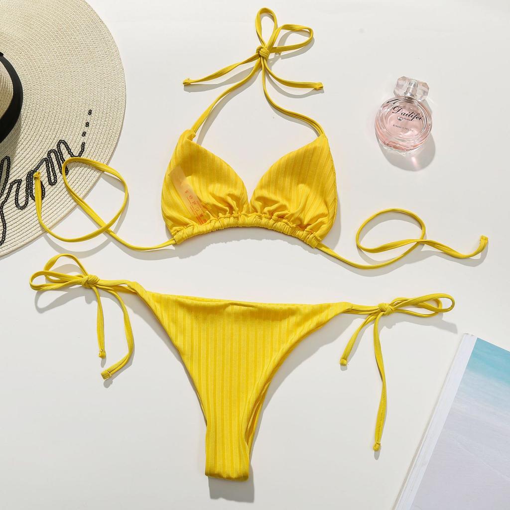 Сексуальный женский купальник, однотонный купальник с разрезом, завязка на спине, стринги с высокой талией, бразильская пляжная одежда