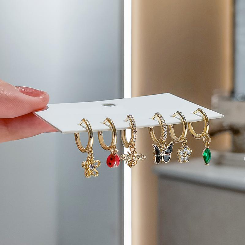 ANENJERY 6 шт./компл. серьги-кольца с цирконием, насекомыми, цветами и бабочками, набор для женщин, блестящие креативные украшения