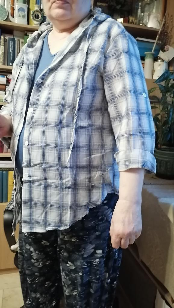 Доставлено своевременно. Упаковано аккуратно в пакет фабричный и сверху пересылочный непрозрачный пакет. Качество материала сомнительное, очень редкое плетение ниток. Похоже на синтетику стилизованную под хлопок. Везде торчат нитки и на швах, и нитки от намётки не удалены. Петли обмётаны плохо для такой реденькой ткани, в эксплуатации будут расползаться нитки под такой обмёткой. Сама ткань немного колется, поэтому закинула сразу в стирку, может мягче станет, если не расползётся 😎. Рубашка сшита как будь-то наспех, не особо аккуратно. На рукавах в разрезе над манжетами с обеих сторон висят нитки шва не обрезанные, как продлён шов, но в воздухе на 10 см. Хлястик для удержания рукава в подвёрнутом виде, тоже пришиты внутри абы как, строчки не до конца прострочены и необработанные карая материала, которые пришиты к рукаву. Есть торчащие края необработанного материала из-за перекоса материала по нижнему шву, как раз на полочке с петлями, которая на виду. Основные швы прострочены ровно. И ещё странно, что розовая рубашка прошита белыми нитками, в том числе и отделочные швы. Размер на 50-52 как раз, но на мои 168 см роста короткие рукава на сантиметров 5 примерно. Не длинная, как кажется на картинке. Задняя часть попу прикрывает до середины, передняя короче. Капюшон не глубокий и не обьемный, чуть до чёлки достаёт в натяг - декоративный. Не более, чем пляжно-дворовой вариант. Перехотелось после этой покупки покупать одежду на Джум🤔 . Не сфотографировала, т.к. сидит на мне не красиво и в ней как-то неуютно🫣 или модель просто не моя. Посмотрю после стирки и глажки, что будет. Если так же, то отдам кому-нибудь, кому подойдёт. 🌷