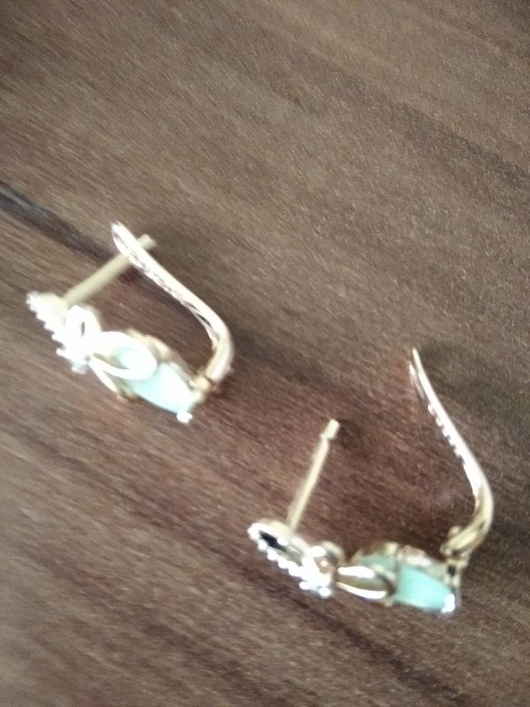 Получила серьги от Кинель с зелененькими камешками. Очень красивые. Качество отличное,камни блестят, переливаются. Застёжки хорошие. Мне понравились. Очень миленькие и маленькие,миниатюрные просто.камень красивый,нежный.Брака не обнаружила. Спасибо продавцу и всем службам .Кому нравятся приобретайте. От золота не отличить.Понравились внучке,что удивительно...Подарила!