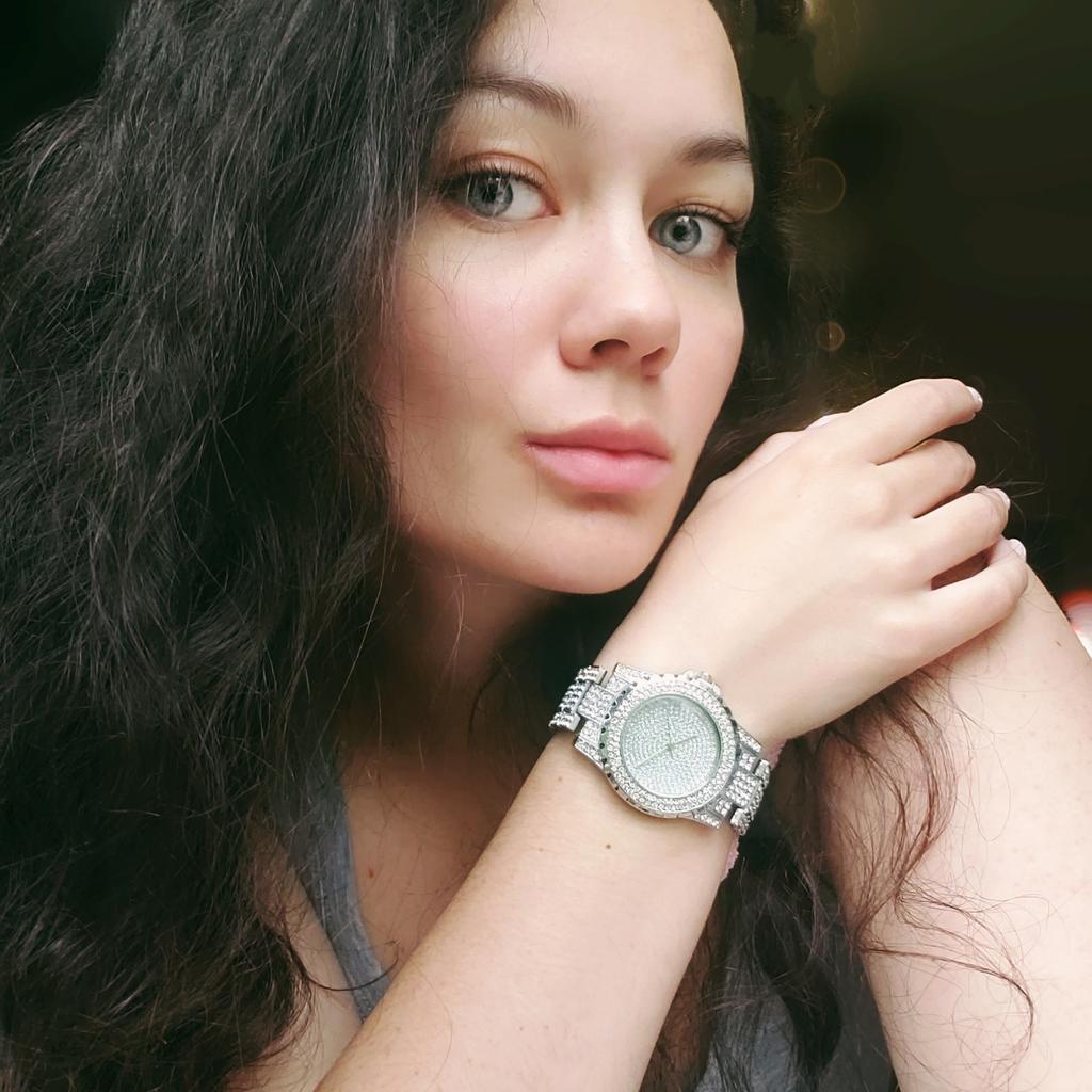 Симпатичные нарядные часы 💫 В жизни смотрятся очень даже симпатично, все камни на месте, полировка до зеркального блеска. Ремень большой, с запасом, но звенья можно убрать. Половина из них со стразами, половина без. Застёжка тугая, плотная. Стоит пластиковая заглушка, чтоб в пути не села батарейка. Часы выглядят мощно и массивно, но на деле очень лёгкие и комфортные. Коробки не было, только пакетик и много пупырки. Доехали до Владивостока за 4 недели, отслеживание до почты