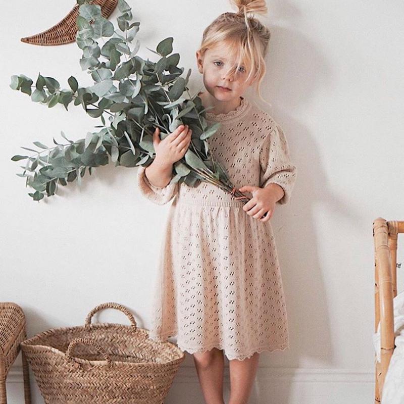 Осеннее и зимнее платье для девочек, детское трикотажное цельное платье с длинными рукавами, свитер, кружевное платье
