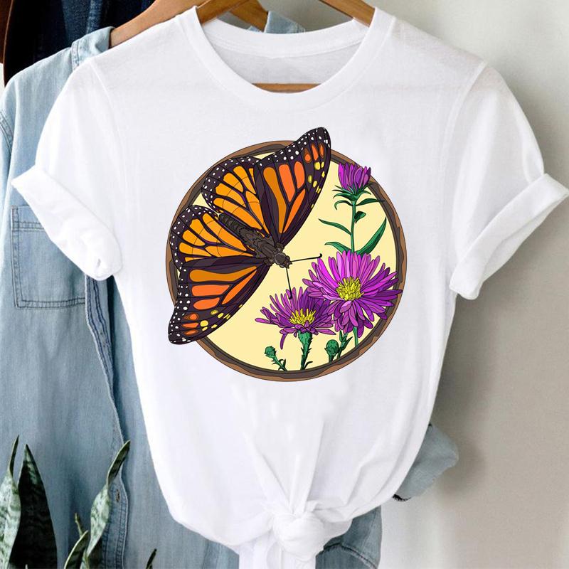 Акварель Прекрасный Стиль Симпатичный Цветочный Тенденция Женская Летняя Мода С Коротким Рукавом Футболка С Принтом Футболка Женская Женская Одежда Повседневная Футболка с Графикой