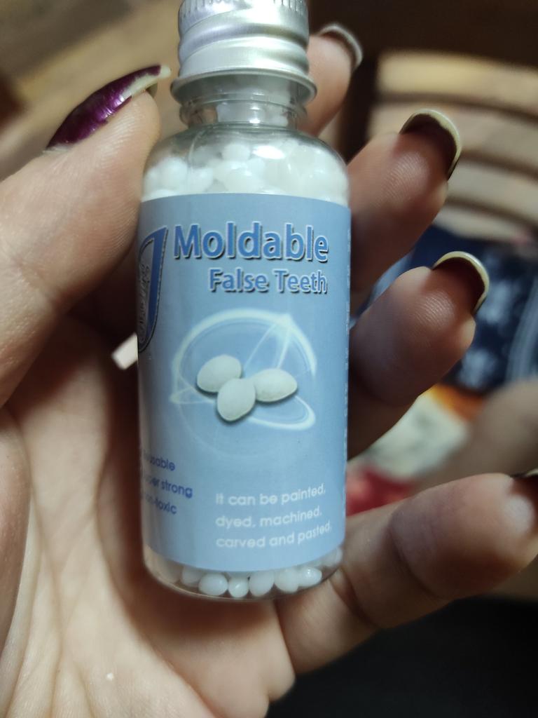Получила посылку. Маленькие шарики. Спасибо тем кто пишет подробные отзывы. Иначе и не знала бы, как пользоваться. Залила горячей водой, подождала, когда станут прозрачными. Потом сформировала недостающую часть зуба прямо на месте, во рту. Хватило 4 шариков-капсул. Конечно, получилось не сразу. Переделывала раза 4, пока не получилось. Сегодня проходила весь день с таким зубчиком. Конечно, чувствуется некоторая мягкость, но зато эстетично. На экстренные случаи очень даже нужная вещь. Рекомендую однозначно. Спасибо , Джум!