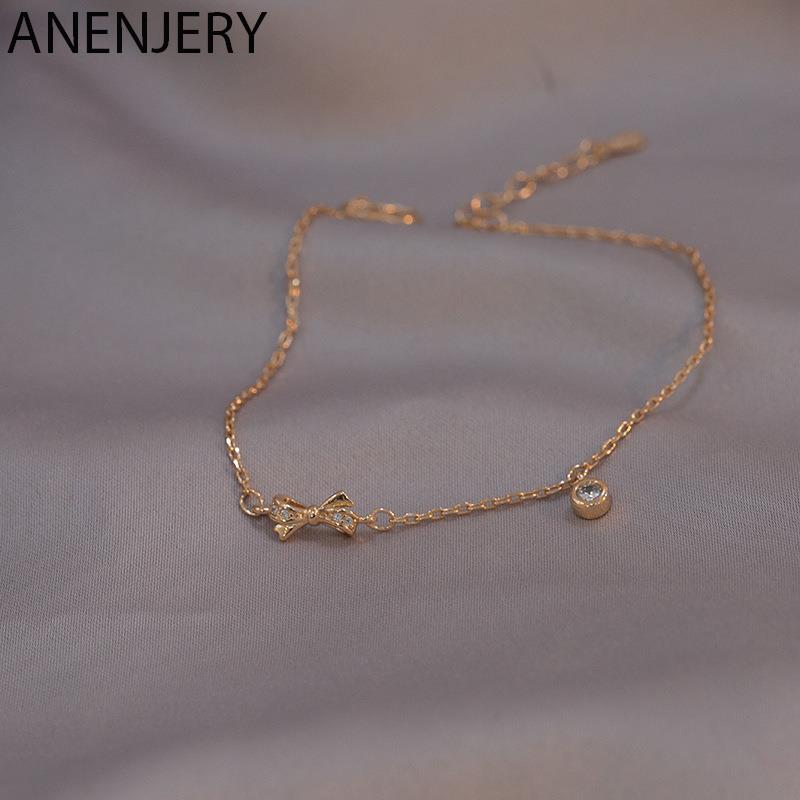 ANENJERY Браслет с бантом для женщин, браслет с кубическим цирконом, ювелирный подарок, новинка 2022 года