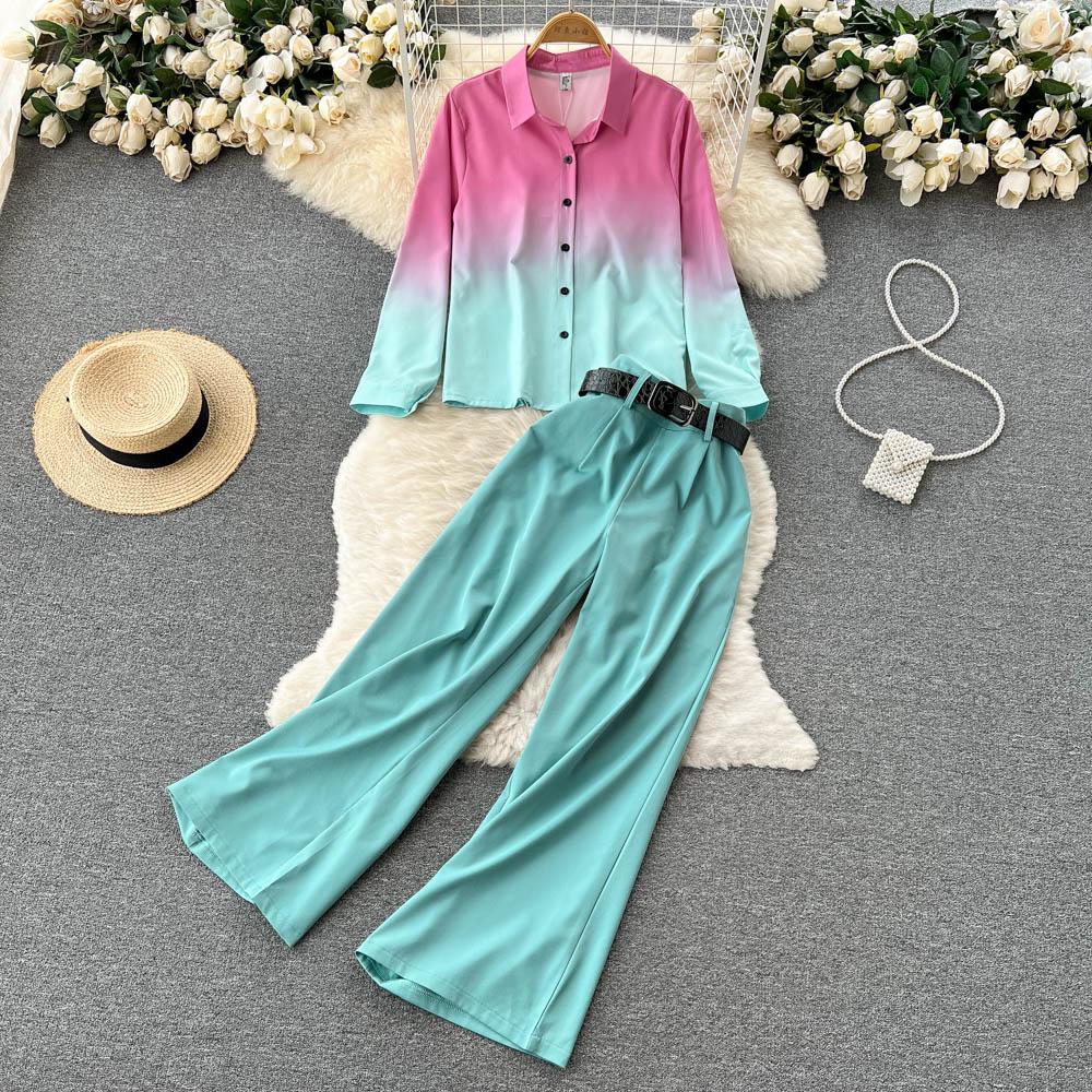 RUGOD Европейская и американская мода подходит женским градиентным рубашкам с длинными рукавами, женским повседневным прямым широким брюкам — купить товар онлайн с бесплатной доставкой до всему миру!